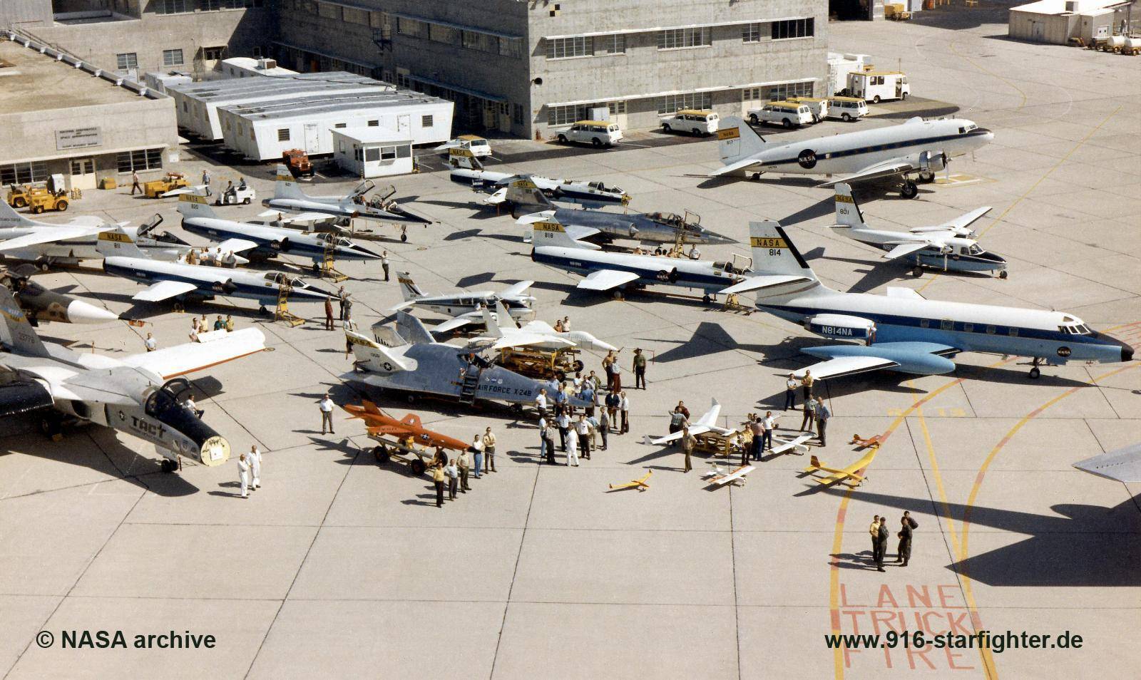 F-104s on ramp at NASA Dryden Flight Research Center, Edwards AFB in 1974 left to right: F-104N 811, F-104A 820, F-104N 812, F-104B 819, F-104A 818 copyright © NASA archive