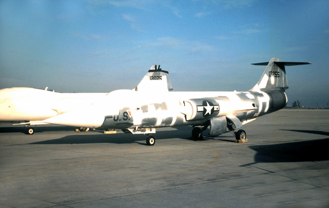 F-104G "13255" (63-13255) landing at Luke AFB, Arizona 1977 F-104G, construction number 683-2039, company model 683-10-19, US serial number 63-13255, built by Lockheed manufactured by Group USA (ARGE-USA); assembly in Fighterbomber version according contract lot 4; flight test release October 27, 1961; flown with register number "139" for test flights KF+115 accepted by BABwLockheed for delivery; airlifted to Messerschmitt-Manching on November 28, 1961 with 12:30 flight hours for reassembly; Messerschmitt test flight on March 16, 1962 project "42" as Fighterbomber (for JaboG 31) with Vulcan M61 20 mm machine gun installed and long range tanks as loose parts DA+243 JaboG 31 "Boelcke" at Norvenich AB delivery date on April 2, 1962 in Silver-finish colors; TSLw 1 on December 7, 1962 for maintenance training coded BF+243 as instructional aircraft (GIA) on January 8, 1963; planned for project "Columbus" on November 15, 1962; February 22, 1963 to Messerschmitt for disassembly according project "Columbus" airlifted coded BG+121 on March 7, 1963 to Lockheed-Burbank; reassembled and modified to the latest modification level at Lockheed-Palmdaleoperated at Luke AFB by the 4510th CCTW (German shadow serial number 2032, never used for registration) in USAF Silver-finish colors coded 13255; 58th TFTW on January 1, 1970 58th TTW on April 1, 1977; in May 1977 with 2.799 flight hours on active flying status; 1978 temporarily in long term storage; flown until end of operation at Luke AFB on March 16, 1983 noted preserved (cocooned) for transfer to ROCAF at Luke AFB in March 1983; struck off charge order (AVA) July 19, 1983; sold to USAF with "Phase III" lot with 2.901 flight hours