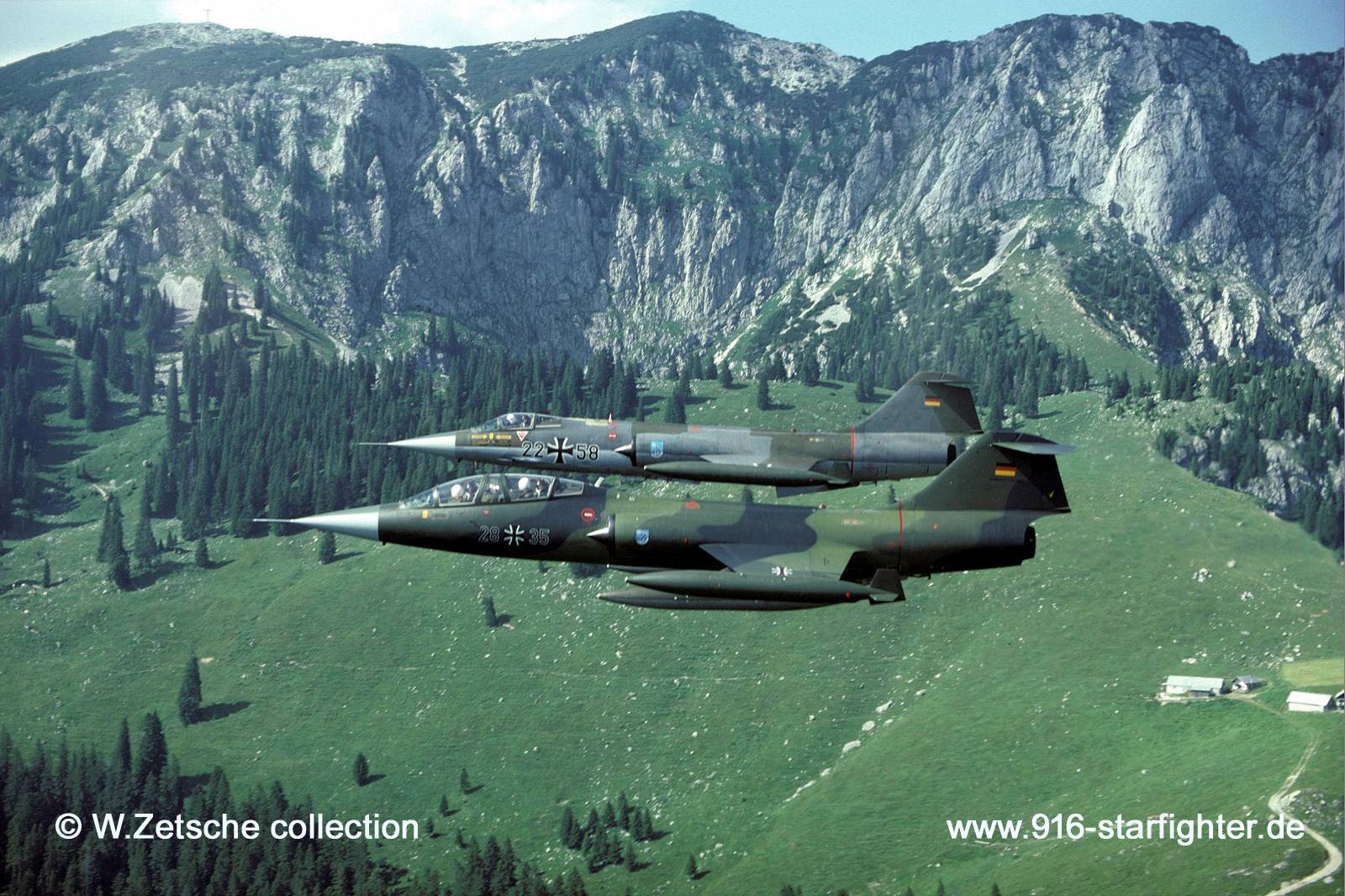 Memmingen trails: F-104G 22+58 of JaboG 34 "Allgäu" over Alpine uplands
