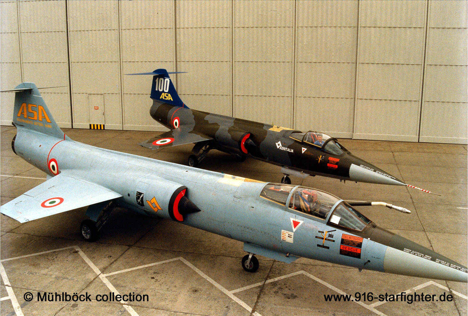"100 ASA" F-104S ASA MM6704 together with ASA prototype MM6945 in 1990 copyright © Mühlböck collection