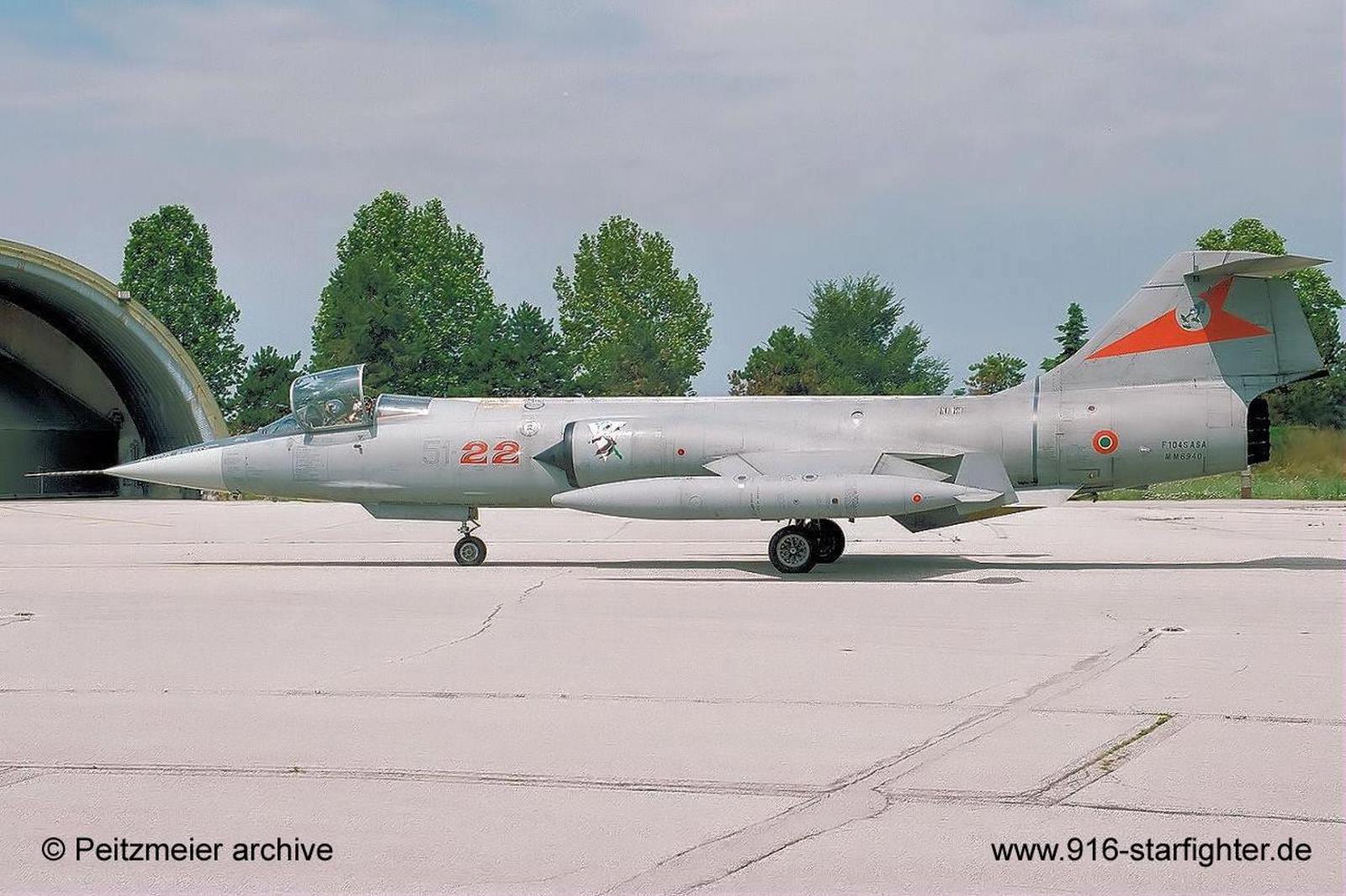 F-104S ASA "51-22" of 22°Gruppo special marks: Red chevron on tail of 22°Gruppo of the early 104s of 22°Gruppo F-104S, construction number 783-1240, serial number MM6940, model 783, built by Aeritalia at Turin-Caselle copyright © Peitzmeier archive