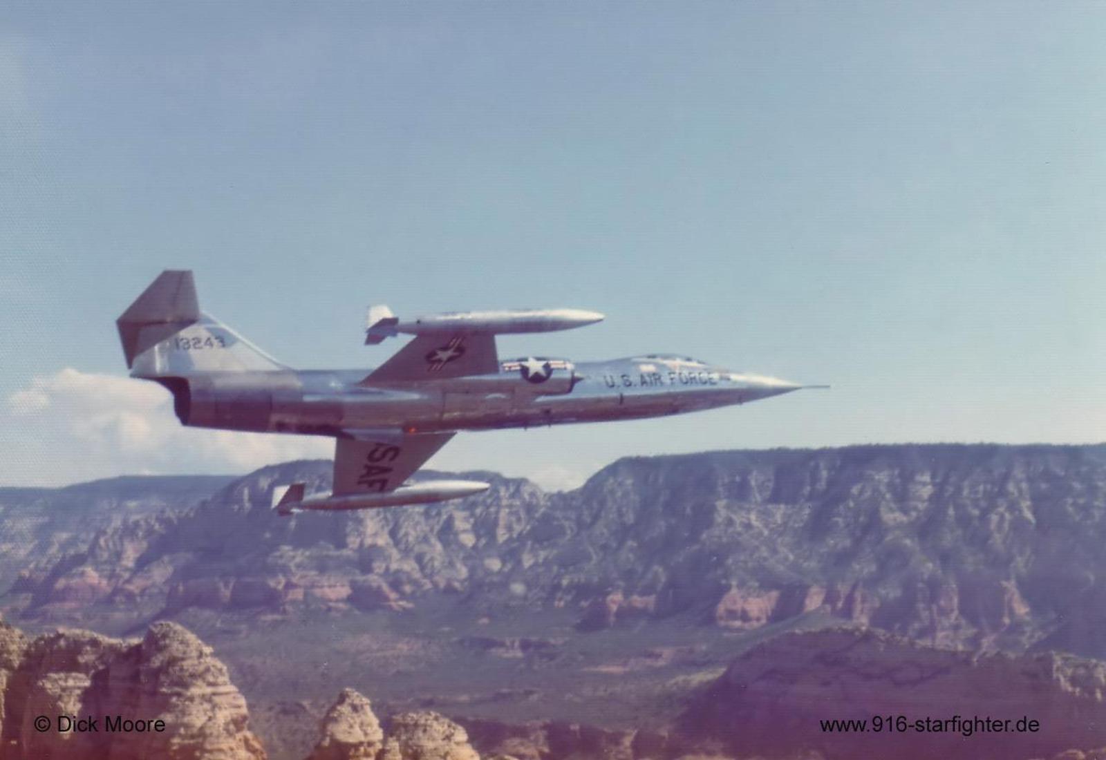 Arizona Skies: F-104G 63-13243 passing the town of Sedona, Arizona picture taken by Richard "Dick" Moore on the occasion of his 1000th hour in the Starfighter in 1973