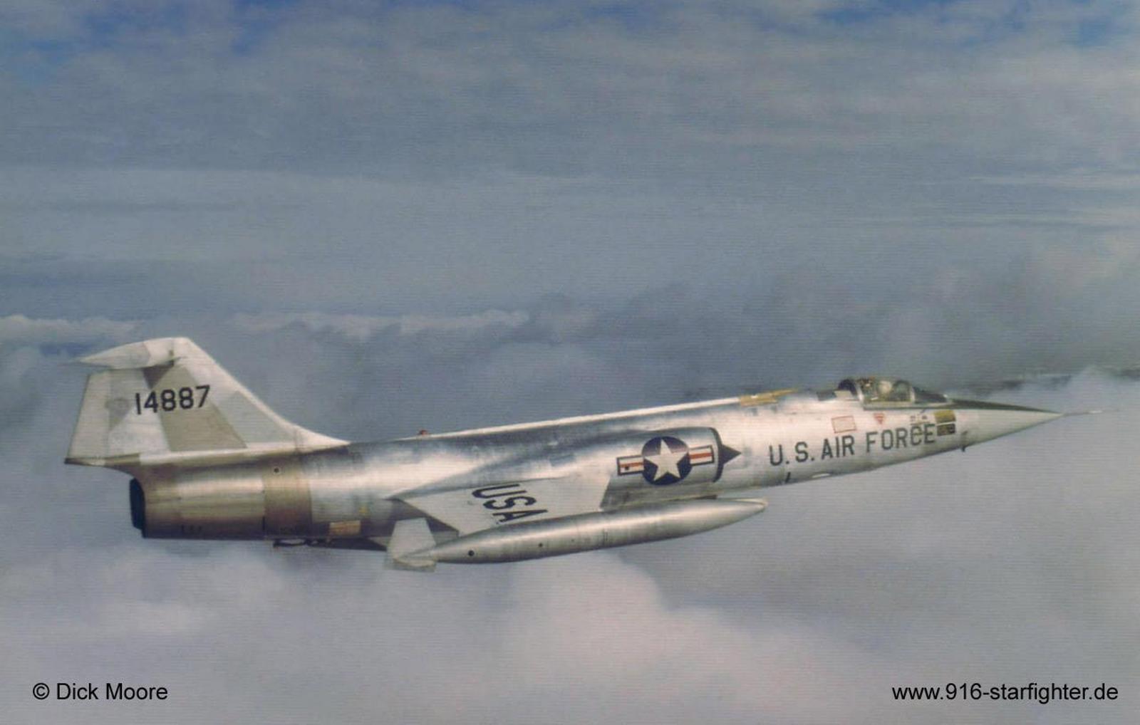 Arizona Skies: F-104G 14887 (67-14887) high over a cloud layer in the Arizona sky taken by Richard "Dick" Moore in a Starfighter in 1973