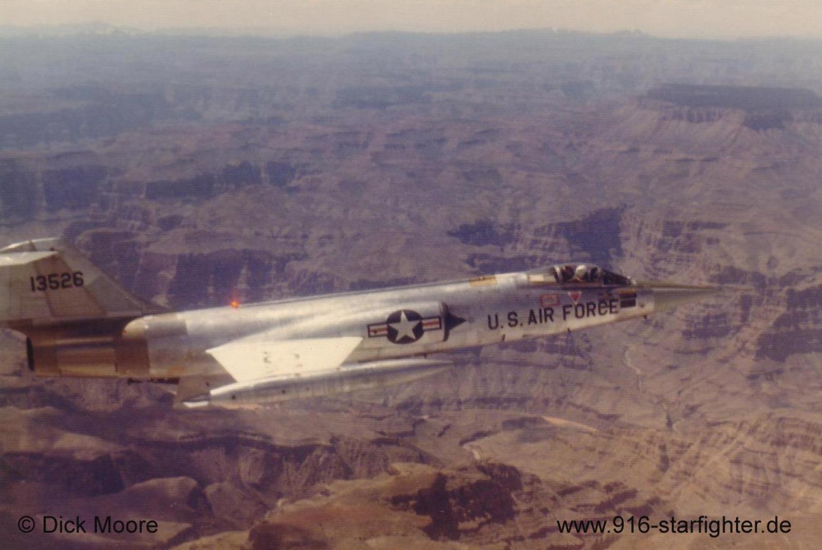 Arizona Skies: F-104G 13526 (66-13526) over the Grand Canyon taken by Richard "Dick" Moore in a Starfighter in 1973