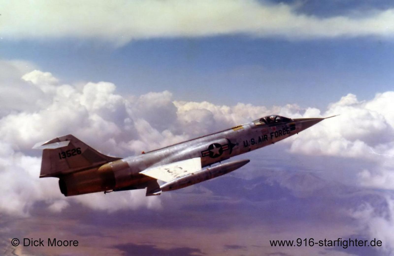 Arizona Skies: F-104G 66-13526 climbing on top taken by Richard "Dick" Moore in a Starfighter in 1973