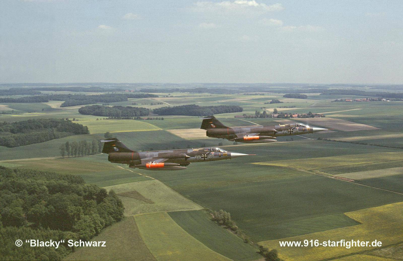 Bavarian trails: F-104G 22+56 and 26+07 of JaboG 33 "4 tanker" formation copyright © "Blacky" Schwarz