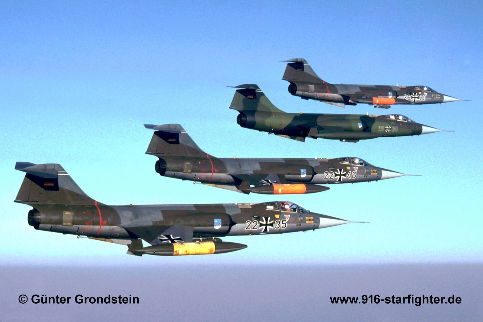 F-104G "22+35" JaboG 34 in fingertip formation over Beja AB, Portugal 1984 copyright © Günter Grondstein
