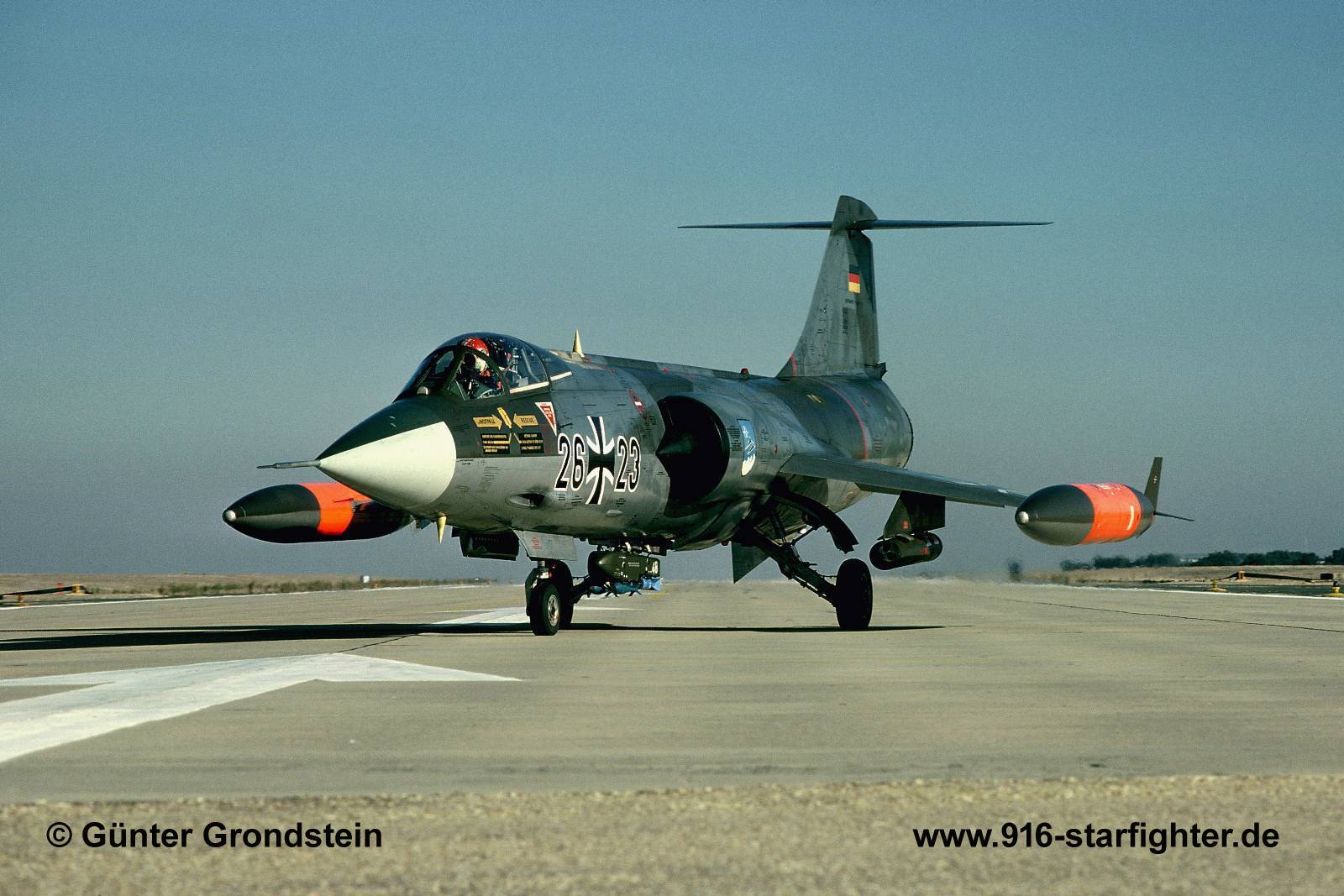F-104G "26+23" JaboG 34 taxing out for a bombing mission at Beja AB, Portugal 1984 copyright © Günter Grondstein
