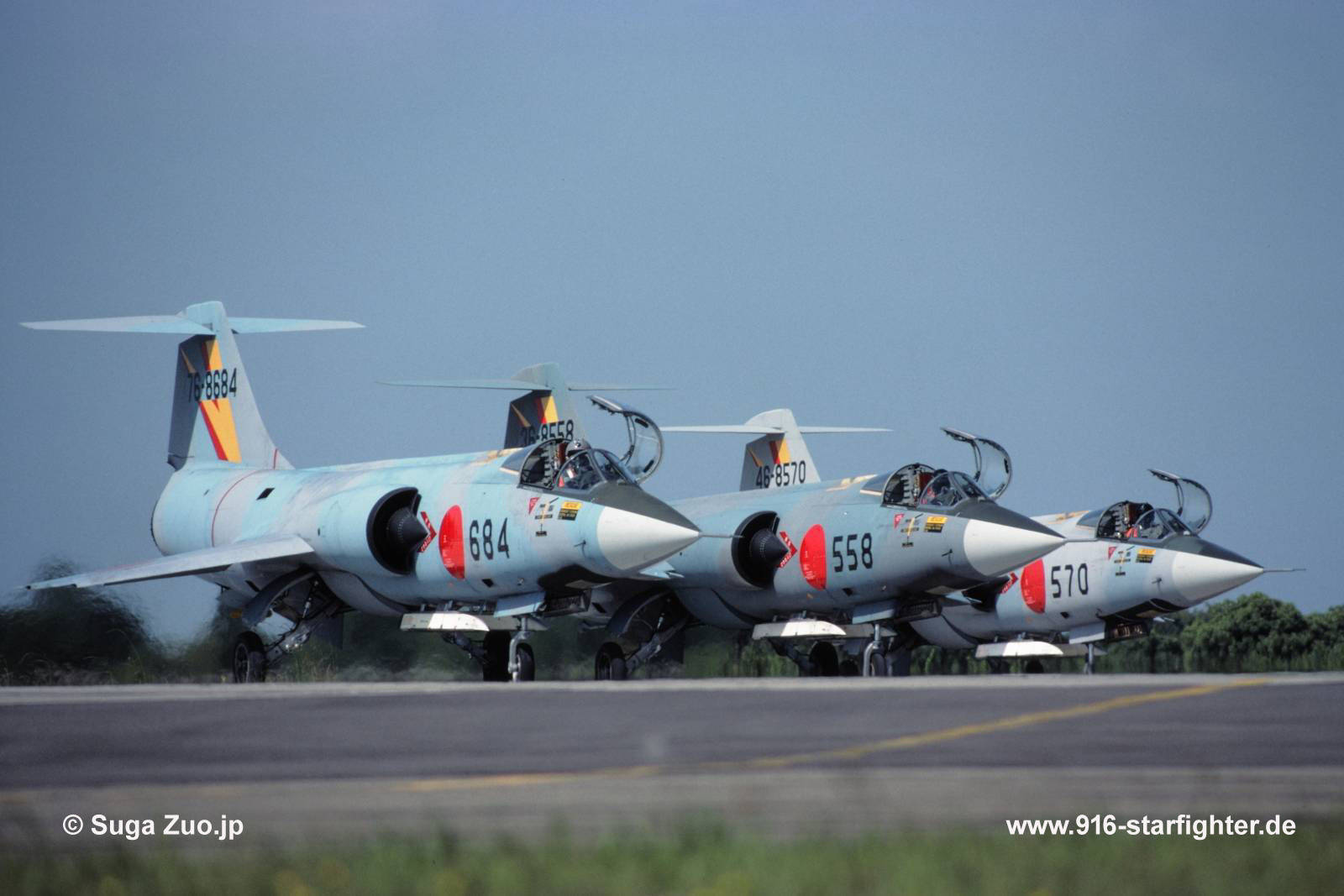 F-104J "684" 202 Hikotai (squadron) in 2-tone light blue/light grey exercise camouflage scheme at Nyutabaru AB in May 1982 F-104J, construction number 683B-3184, model 683-07-14, JASDF serial number 76-8684, built by Mitsubishidelivery date February 6, 1967; first 205 squadron of 6 Wing; to 204 squadron of 5 Wing; to 207 squadron of 7 Wing; at 206 squadron of 7 Wing in August 1973 at 202 squadron of 5 Wing in November 1980; at ACM meeting in late 1980 carrying a 2-tone light blue/light grey color scheme + a fake canopy at ACM annual fighter meeting in June 1982 at Komatsu carrying a light blue/light grey camouflage scheme; at 204 squadron of 5 Wing in January 1983 withdrawn from use in November 1991 at Gifu AB; noted in hangar at Gifu AB in October 1997; scrapped. copyright © Suga Zuo