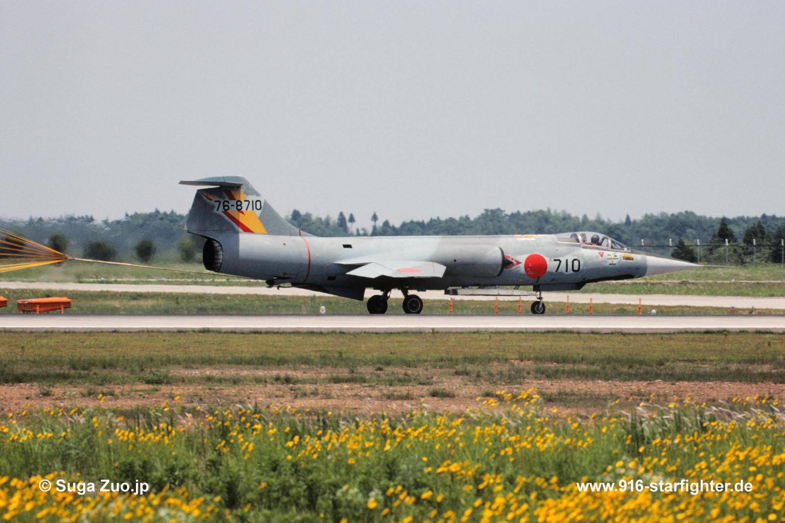 F-104J "710" 202 Hikotai (squadron) with the ACM meeting 1981 "F-16 colors alike" exercise camouflage scheme in May 1982 at Nyutabaru AB F-104J, construction number 683B-3210, model 683-07-14, JASDF serial number 76-8710, built by MitsubishiJASDF delivery date December 12, 1967; first unit unknown; in 1980 with 202 squadron of 5 Wing for ACM exercise 1980 with top dark blue and bottom light blue color scheme; for ACM exercise 1982 with light blue light grey camouflage scheme; withdrawn from use date is unknown preserved at College of Naka Nippon Aviation (CNA), Seki City, Gifu Prefecture in 1983 fist noted; canopy serial number 76-8686, with 2 Wing 203 squadron marks noted September 23, 2002, October 10, 2005 noted; restoration January 5, 2013 first noted; August 14, 2017 noted at a new position; September 2025 noted.