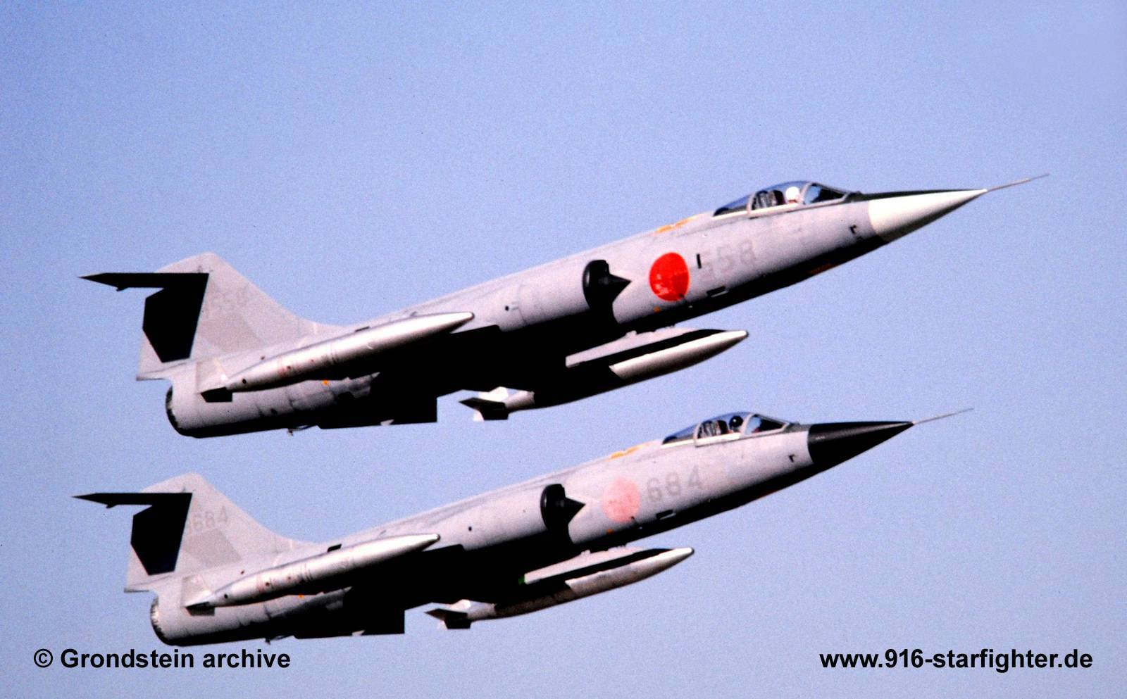 F-104J "684" (76-8684) 204th Hikotai (squadron) of 5th Wing in overall "toned down" scheme, covering also squadron markings at Nyutabaru AB 1983 F-104J, construction number 683B-3184, model 583-07-14, serial number 76-8684, built by MitsubishiJapanese Air Self Defense Forces (JASDF) Order of Operations Mitsubishi built; delivery date February 6, 1967; first 205 squadron of 6 Wing; to 204 sqn of 5 Wing; to 207 squadron of 7 Wing; at 206 squadron of 7 Wing in August 1973 at 202 squadron of 5 Wing in November 1980; at ACM meeting in late 1980 carrying a 2-tone grey color scheme + a fake canopy at ACM annual fighter meeting in June 1982 at Komatsu carrying a light blue light grey camouflage scheme; at 204 squadron of 5 Wing in January 1983 withdrawn from use in November 1991 at Gifu AB; noted in hangar at Gifu AB in October 1997; scrapped. copyright © Grondstein archive
