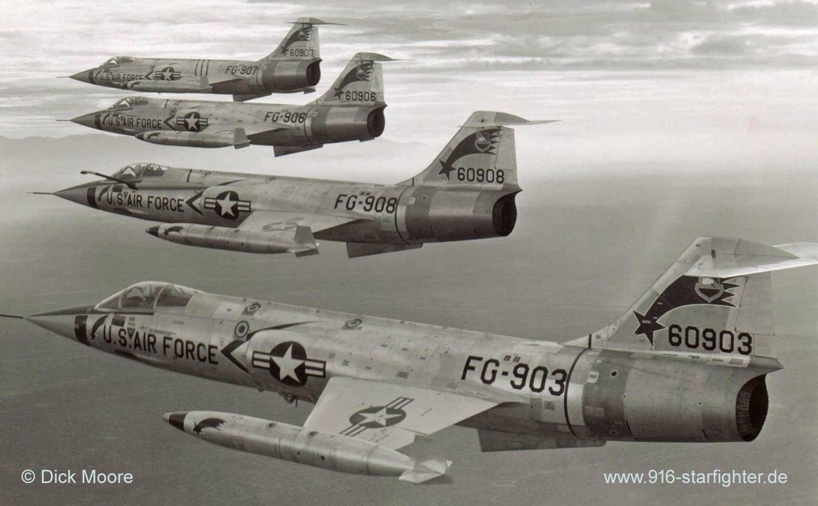 F-104C "FG-903" (56-0903) 434th TFS "Red Devils" in the early colorful markings 434th TFS "Red Devils" (red) December 1958 - December 1961 flying F-104C and F-104D It later became the initial F-104G training squadron and was designated 4443rd CCTS and moved to Luke AFB 1964 as the initial NATO F-104G training unit A fighter bomber unit disbanded on January 3, 1962. copyright © Dick Moore