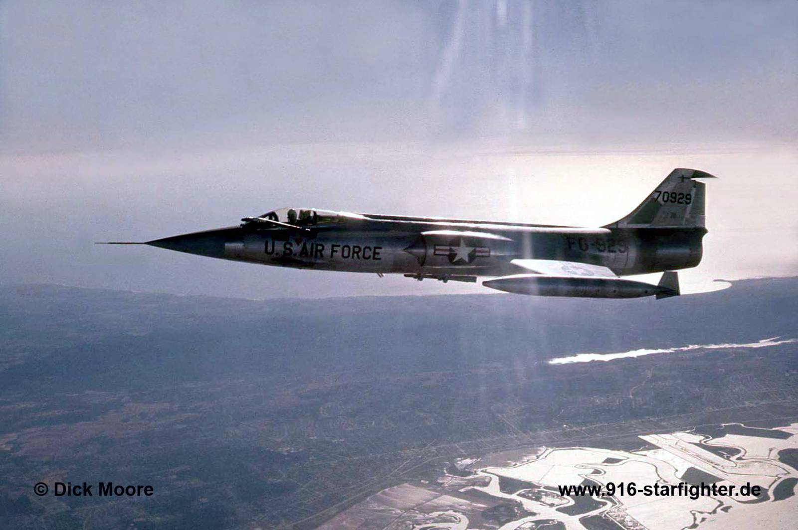 F-104C "FG-929" 70929 436th TFS "Black Aces" 1963 F-104C, construction number 183-1246, model 483-04-05, US serial number 57-0929, built by Lockheed date available January 12, 1959; date accepted March 1, 1959; delivery date to USAF March 10, 1959 479th TFW delivery date March 10, 1959 coded FG-929; October 20, 1962 57-0929 suffered a broken refueling probe during inflight refueling from a KB-50J tanker at 22,000 feet near Hobbs, New Mexico; 436 TFS at DaNang 1965; 1966/67 at Udorn 435 TFS; as 0-70929 with Puerto Rico Air National Guard (PRANG) December 1972 noted written off January 23, 1975 57-0929 suffered loss of both leading edge flaps and damage to trailing edge flaps after encountering afterburner jet wash from another F-104C during ACM. The aircraft was thrown into a dive which was recovered just 200' above the water. A safe landing was made following this incident with no injury to the pilot; damage beyond economical repair, written off at University of Puerto Rico, Mayaguez, Puerto Rico Reserve Officers' Training Corps (ROTC) area with 198th TFS marks 1975; restoration in 2003 display 156th Airlift Wing, 60th Anniversary, San Juan-Luis Munoz Marin International (TJSJ), (Muniz AB) November 18, 2007 noted; June 2009 noted; new paint in 2020; December 2024 noted.18°26'33.91"N 65°59'31.50"W copyright © Dick Moore
