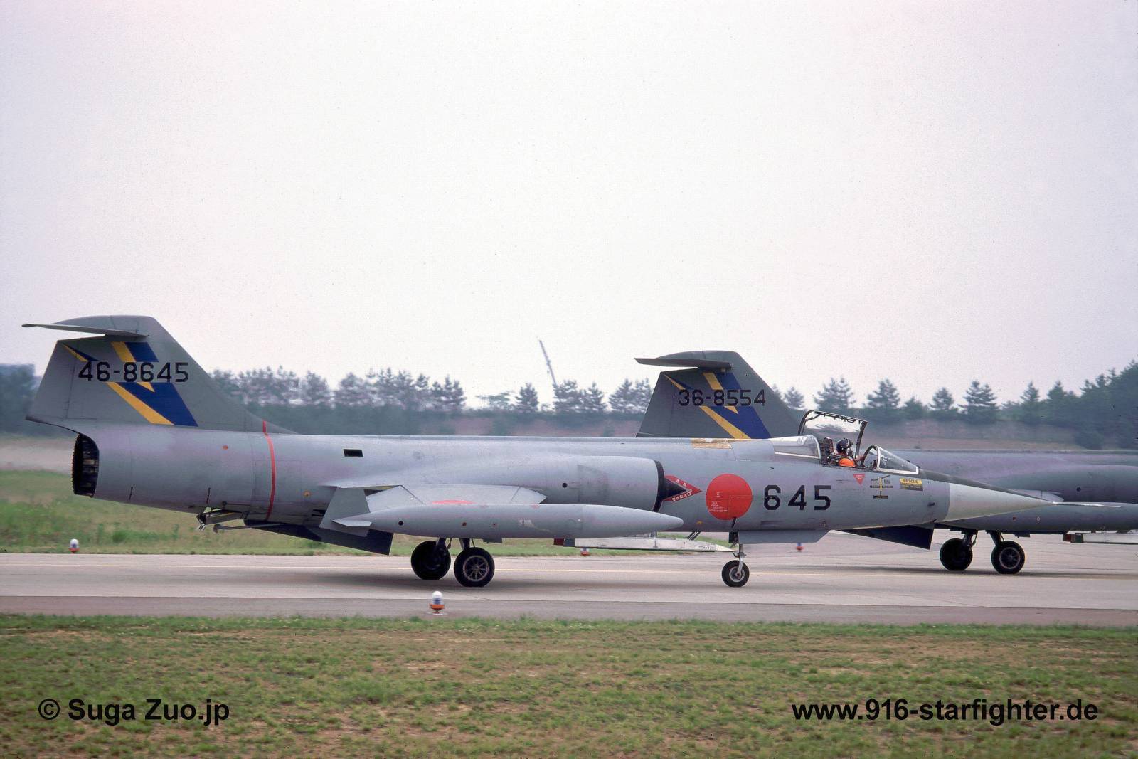F-104J "645" (46-8645) 204 Hikotai (squadron) at Komatsu AB in "light grey" ACM camouflage scheme in June 1982 F-104J, construction number 683B-3145, model 683-07-14, JASDF serial number 46-8645, built by MitsubishiMitsubishi-built; delivery date November 16, 1964; assigned to 205 Hikotai at Komatsu; later assigned to 203 Hikotai of 2 Kokudan at Chitose from 1981 assigned to 204 Hikotai of 5 Kokudan; 46-8645 F-104J 204 squadron light grey ACM camouflage scheme Komatsu AB in June 1982 1982 withdrawn from use and ferried to 2 supply depot at Gifu; returned to USA and transferred to ROCAF