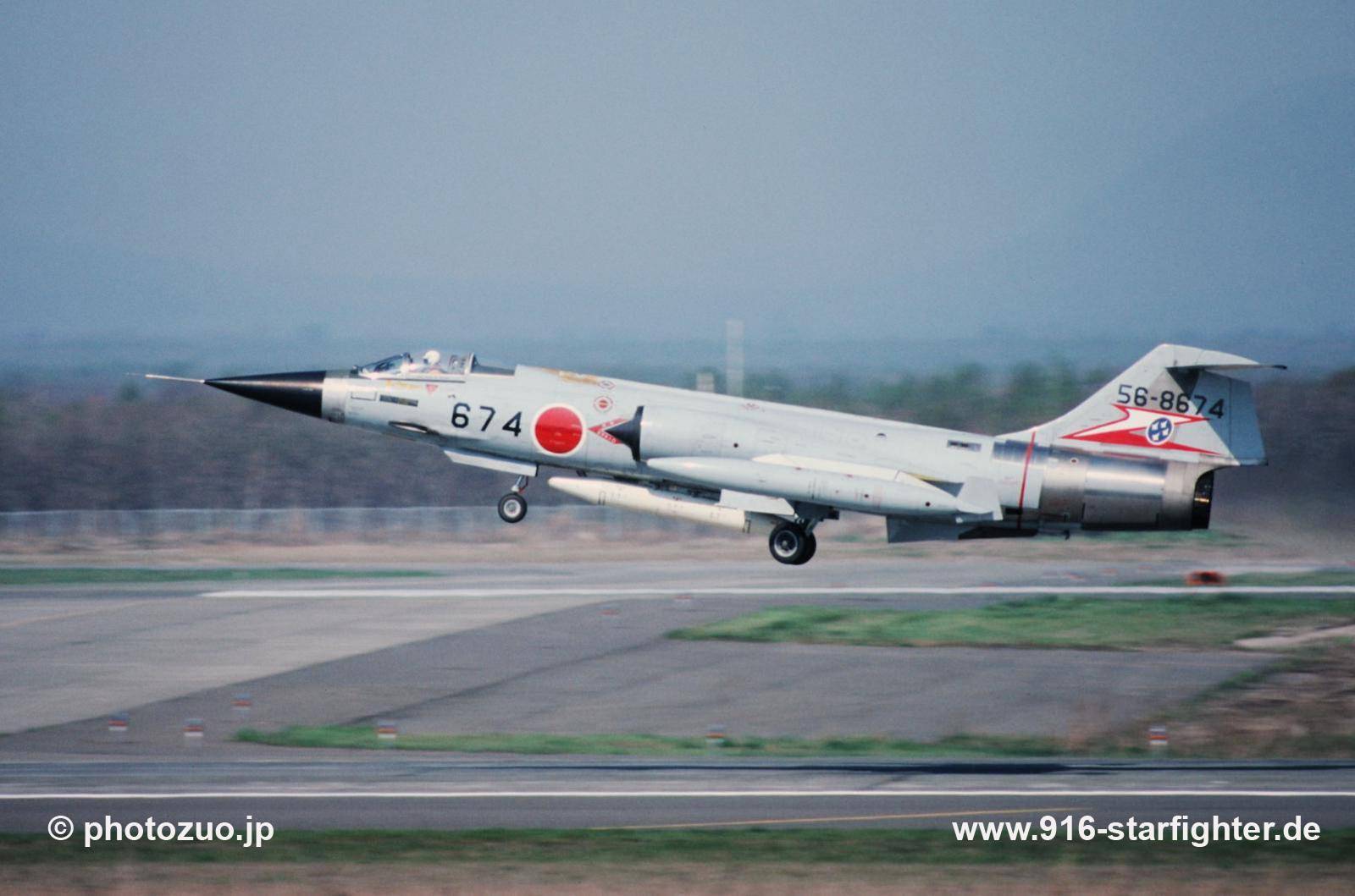 F-104J "674" 207 Hikotai (squadron) take-off at Chitose AB with "Practice Bomb Dispenser" SUU-21 in 1981 F-104J, construction number 683B-3174, model 683-07-14, JASDF serial number 56-8674, built by MitsubishiMitsubishi built; February 26, 1965 delivered to JASDF; in 1979 with 207 Hikotai of 83 AG May 1981 207 squadron with black radome seen at Chitose AB; March 30, 1982 withdrawn from use by 207 Squadron, scrapped. copyright © Suga Zuo