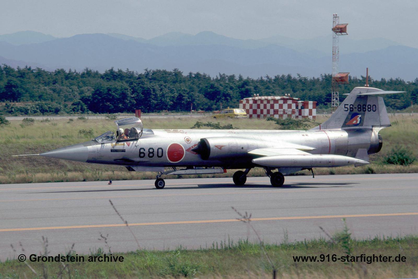 F-104J "680" 205 Hikotai (squadron) at Komatsu AB 1979 F-104J, construction number 683B-3180, model 683-07-14, JASDF serial number 56-8680, built by MitsubishiMitsubishi built; March 17, 1965 delivered to Air Self-Defense Force; to 206th Hikotai of 7 Wing; later 203rd Hikotai of 2 Wing; in 1973 to 205th Hikotai of 6 Wing crashed after flame-out landing with fatal touchdown at Komatsu AB (Cat 4 landing) in 1979, the pilot was ok; lateron it was declared a Cat 5 and written off. Japanese sources mentioned 9 October but this was probably because they counted the days in relation to newspaper information on October 8, 1980 680 was officially withdrawn from use. copyright © Suga Zuo