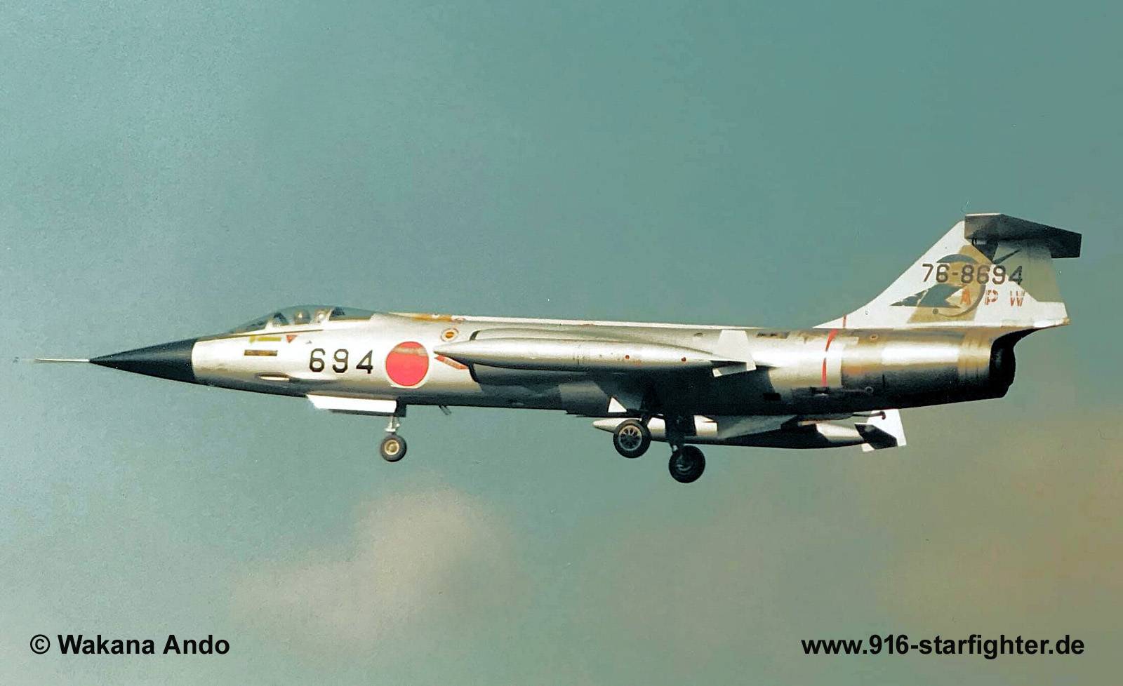 F-104J "694" APW at Gifu AB in January 1987 F-104J, construction number 683B-3194, model 683-07-14, JASDF serial number 76-8694, built by MitsubishiMitsubishi built; delivery date July 7, 1967; initially 202nd Hikotai; from 1972 with 204th Hikotai; from about 1980 207th Hikotai at Naha AB May 25, 1983 withdrawn from use at 2nd Supply Depot at Gifu AB; display at Maizuru Castle Park, Kofu City in February 1984 preserved as display a Shizuhama AB JASDF, Shizuoka Prefecture, 11 Wing marks, first noted November 1985 marks of the 12th Flying Education Group at Shizuhama Air Base noted May 14, 1989; October 2005 noted; December 2014 last noted March 31, 2016 scrapped and dumped at opposite end of runway. copyright © Wakana Ando