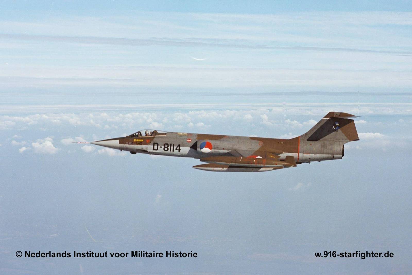 F-104G "D-8114" RNLAF 311 squadron from Volkel AB F-104G, construction number 683D-8114, model 683-10-19, built by Fokkermanufactured by North Group (ARGE-Nord); Fokker factory construction number 10564; delivery date October 2, 1963 coded D-8114 with 306 squadron OCU 322/323 squadrons pool; 311 squadron; 312 squadron; withdrawn from use June 18, 1984 at UFO; to Ypenburg June 18, 1984 preserved faculty of Aerospace Engineering of Delft University of Technology in May 2001, 2005 last noted; stored Soesterberg April 2011 noted restoration by HVV (Historische Vliegtuigen Volkel, Historical Aircraft Volkel); D-8114 for static display at the Air Force Days at Volkel in June 2013; May 2025 noted. copyright © NIMH - Netherlands Institute for Military History