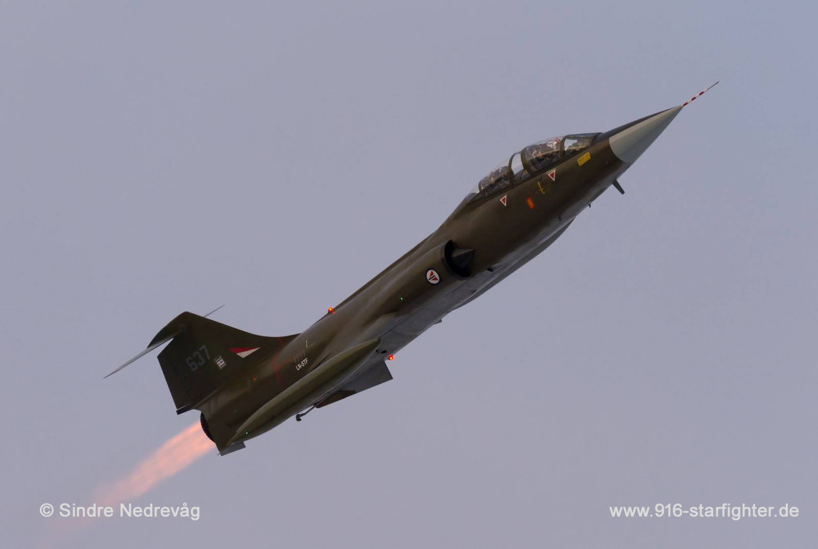 CF-104D "LN-STF" with "Max AB" 2016 CF-104D, Lockheed model 583-04-15, Lockheed construction number 583A-5307, RCAF serial number 12637, Mk 1 (Dual Training Aircraft), built by Lockheed copyright © Sindre Nedrevåg