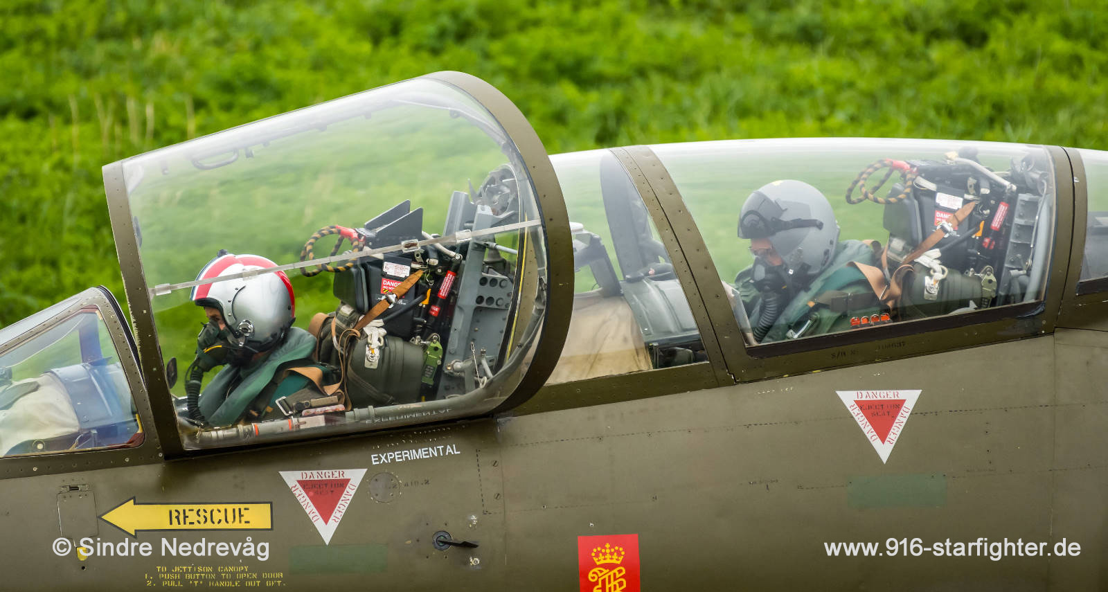 CF-104D "LN-STF" after a system test flight, with a happy second pilot Helge Andreassen CF-104D, Lockheed model 583-04-15, Lockheed construction number 583A-5307, RCAF serial number 12637, Mk 1 (Dual Training Aircraft), built by Lockheed Mk 1 (Dual Training Aircraft) May 17, 1962 to Cold Lake; September 11, 1972 to SAL; to Norway July 15, 1973 as "637" with 1.392 hoursoperated by the 334 squadron; last flight and withdrawn from use March 14, 1983, used as ABDR airframe at Bodø AB, as "637" at Bodo Museum (Norsk Luftfartsmuseum) 2001 Friday September 13, 2002 CF-104D 637 was handed over from The Norwegian Aviation Museum to the resource group. The event took place at the museum. In the chill full, windy climate of northern Norway, the plane was towed out from the museum-hall and brought back to its old habitat, Bodø Airbase, 2006 last noted stored at Bodø AB evaluated for future airworthiness and flying registered LN-STF CF-104D 104637 became the hobby for a lot of old F-104 related retired and enthusiast personnel at Bodo Air Base. September 28, 2016, really a day to remember for all time, again an F-104 took off from European ground. It was 33,5 years ago that CF-104D 104637 shut off its engine to start an unsure future. June 7, 2017 LN-STF made its 2nd test flight from Bodo, since it was withdrawn from use by the Norwegian Air Force on April 1, 1983. copyright © Sindre Nedrevåg