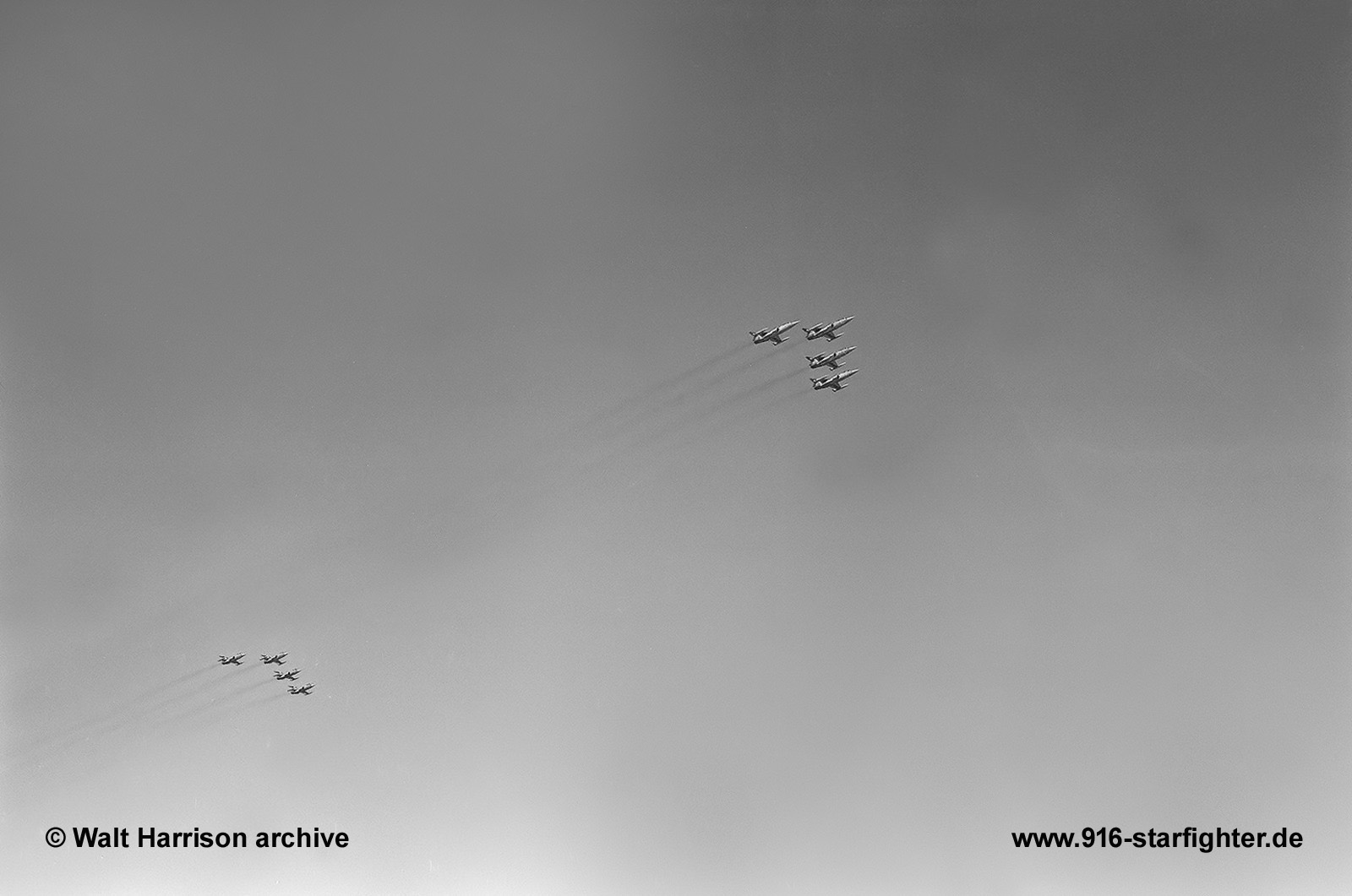 The final flyover of the last class March 16, 1983 When a third squadron was added to the 4540th CCTG, however, it differed from the other two in that it was associated with the Military Assistance Program (MAP). On May 22, 1964, TAC relieved the 4443rd CCTS from its assignment to Headquarters, 831st Air Division, George AFB, California, and reassigned it to the 4540th CCTG, effective August 1, 1964. The reassignment involved aircraft and a different training program. The 4443rd CCTS had operated a small Combat Crew Training School in USAF configured F-104 aircraft for MAP countries at George AFB, California. Because the 15 Starfighter involved were MAP aircraft maintained by USAF personnel at George, a separate contract was negotiated with Lockheed for maintenance. The program transferred was also a MAP training course, and its cost was not borne by the German government. The move consolidated all F-104 training at one location. copyright © Walt Harrison archive
