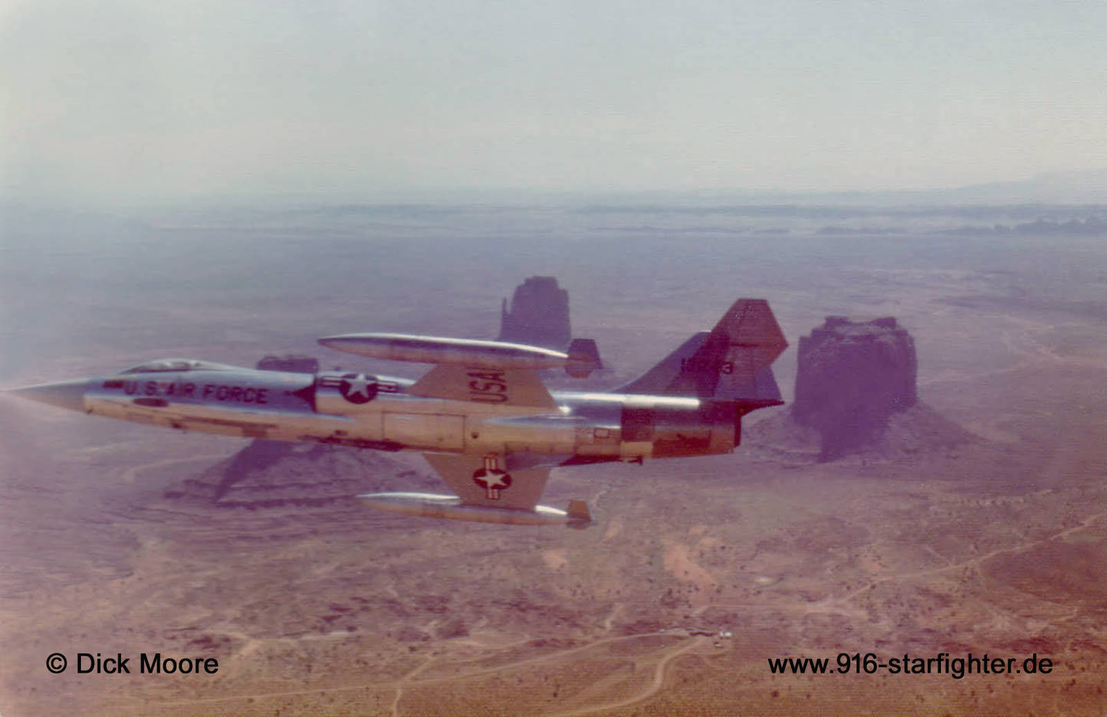 F-104G "13243" (63-13243) over Monument Valley 1973 On 16 March 1983, USAF/German AF F-104 Starfighter Program ended after producing 2.200 graduates for North Atlantic Treaty Organization air forces. The 69th Tactical Fighter Training Squadron, which conducted the F-104 program, was deactivated.. copyright © Dick Moore
