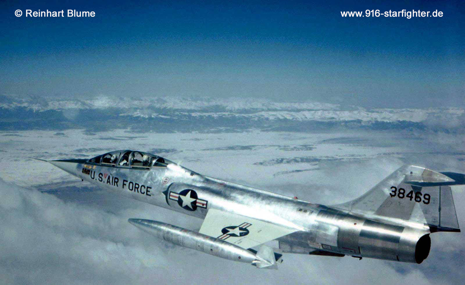 TF-104G "38469" (63-8469) 58 TFTW (58 Tactical Fighter Training Wing) Luke AFB 1971 TF-104G, construction number 583D-5779, model 583-10-20, US serial number 63-8469, built by Lockheed manufactured by Group USA (ARGE-USA) and assembly at Lockheed-Palmdale for Germany first flight 1963; test flights with US registration "63-8469"; MAP for Germany in 1963operated only by the 4510th CCTW at Luke AFB (German shadow serial number 2771) coded 38469 in USAF Silver-finish colors stored in 1972; struck off charge order (AVA) August 3, 1974