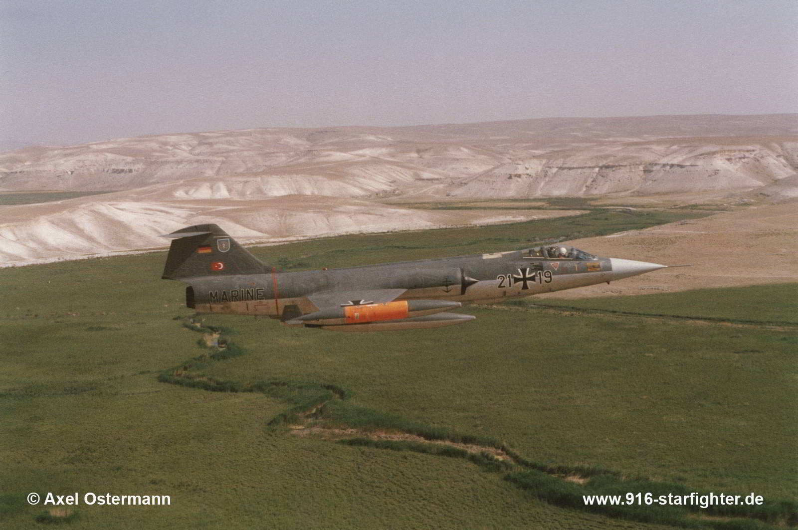 RF-104G "21+19" of MFG 2 over Marmara region, Turkey (observe the Turkish Flag on the rudder) photo taken by Axel Ostermann on a Squadron Exchange in July 1986 with Turkish Air Force 161 Filo (squadron) at Bandirma AB