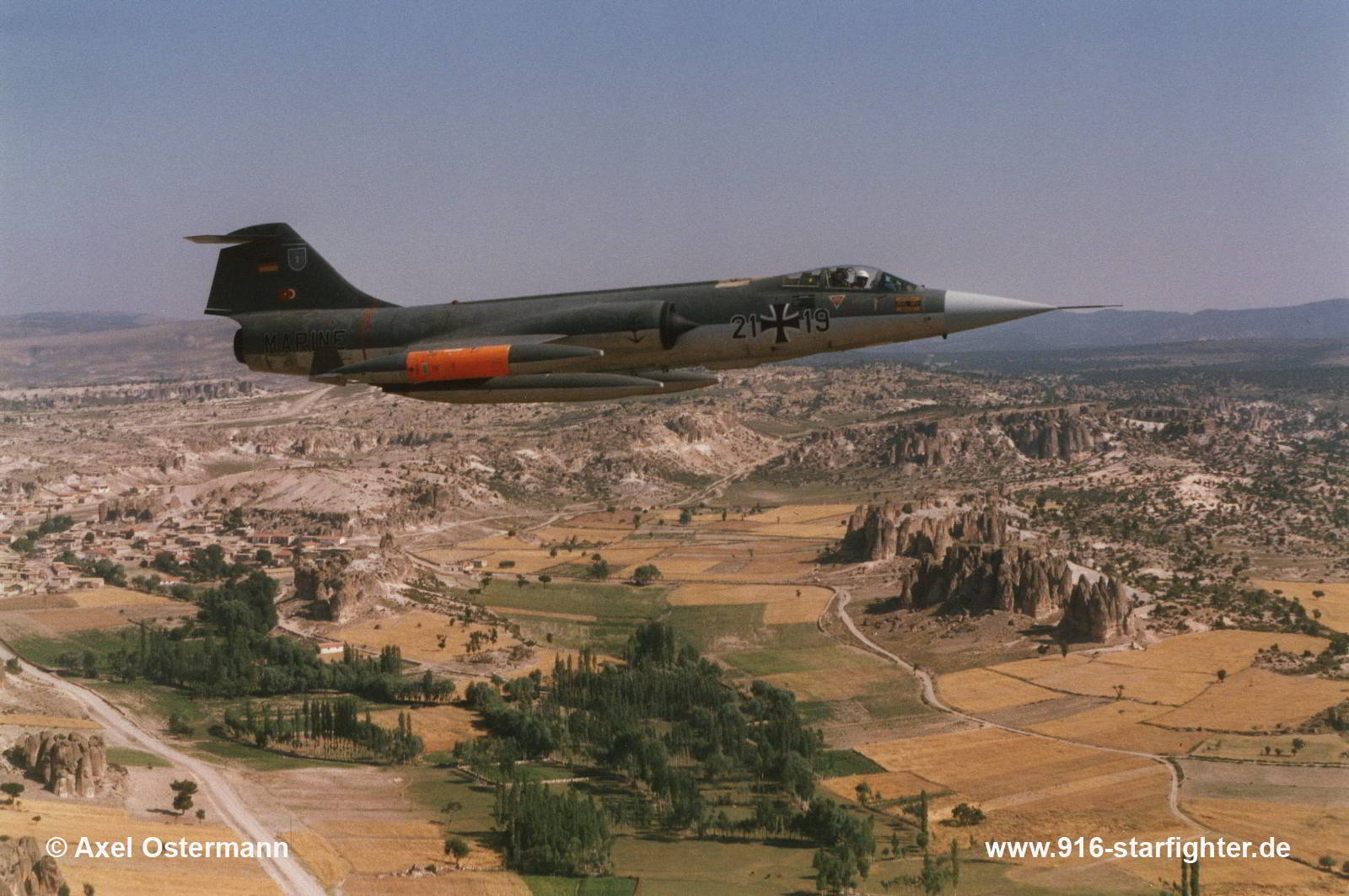 RF-104G "21+19" of MFG 2 over Balikesir province countryside, Turkey photo taken by Axel Ostermann on a Squadron Exchange in July 1986 with Turkish Air Force 161 Filo (squadron) at Bandirma AB