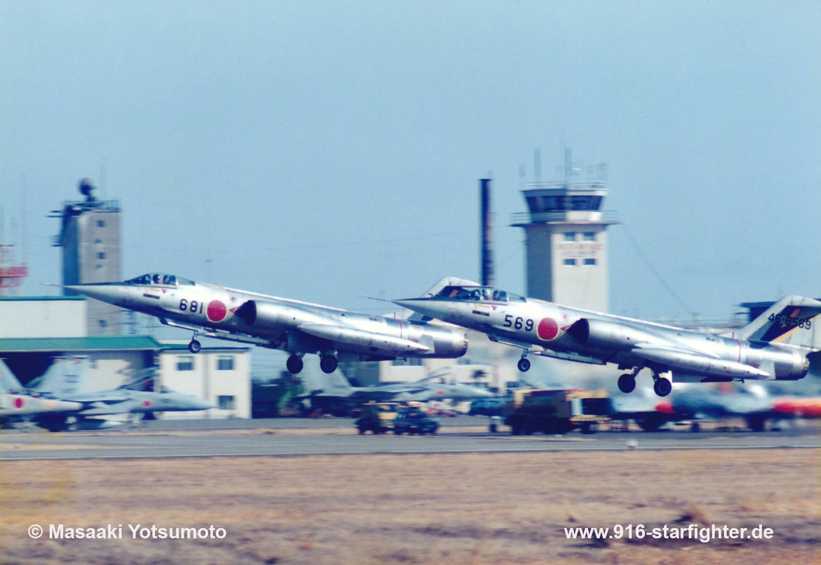 F-104J "569" 204 Hikotai (squadron) formation take-off at Nyutabaru AB February 7, 1984 F-104J, construction number 683B-3069, model 683-07-14, JASDF serial number 46-8569, built by MitsubishiMitsubishi built; delivery date February 12, 1964; first assigned to 5th Kokudan, shared between 202nd and 204th Hikotai; from about 1977 202nd Hikotai 1982 after Hikotai re-arranged to 204th Hikotai; 1984 to 207th Hikotai, 1985 withdrawn from use