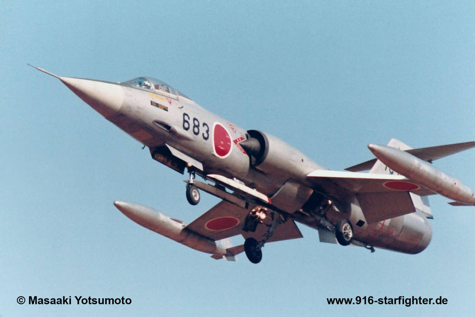 F-104J "683" 204 Hikotai landing at Nyutabaru AB January 10, 1984 F-104J, construction number 683B-3183, model 683-07-14, JASDF serial number 76-8683, built by MitsubishiMitsubishi built; delivery date February 1, 1967; first 206 squadron of 7 Wing at Hyakuri until 1976; to 205 squadron of 6 Wing on August 1, 1979 at Komatsu AB to 203 squadron of 2 Wing in November 1981; 203 Hikotai 76-8683 2 tone grey color scheme at ACM meeting; January 10, 1984 to 204 Hikotai of 5 Wing at Nyutabaru AB flown at Nyutabaru AB Air Festival on November 25, 1984; withdrawn from use at Gifu AB on December 13, 1985; last noted stored in hangar at Naha AB; scrapped. copyright © Masaaki Yotsumoto