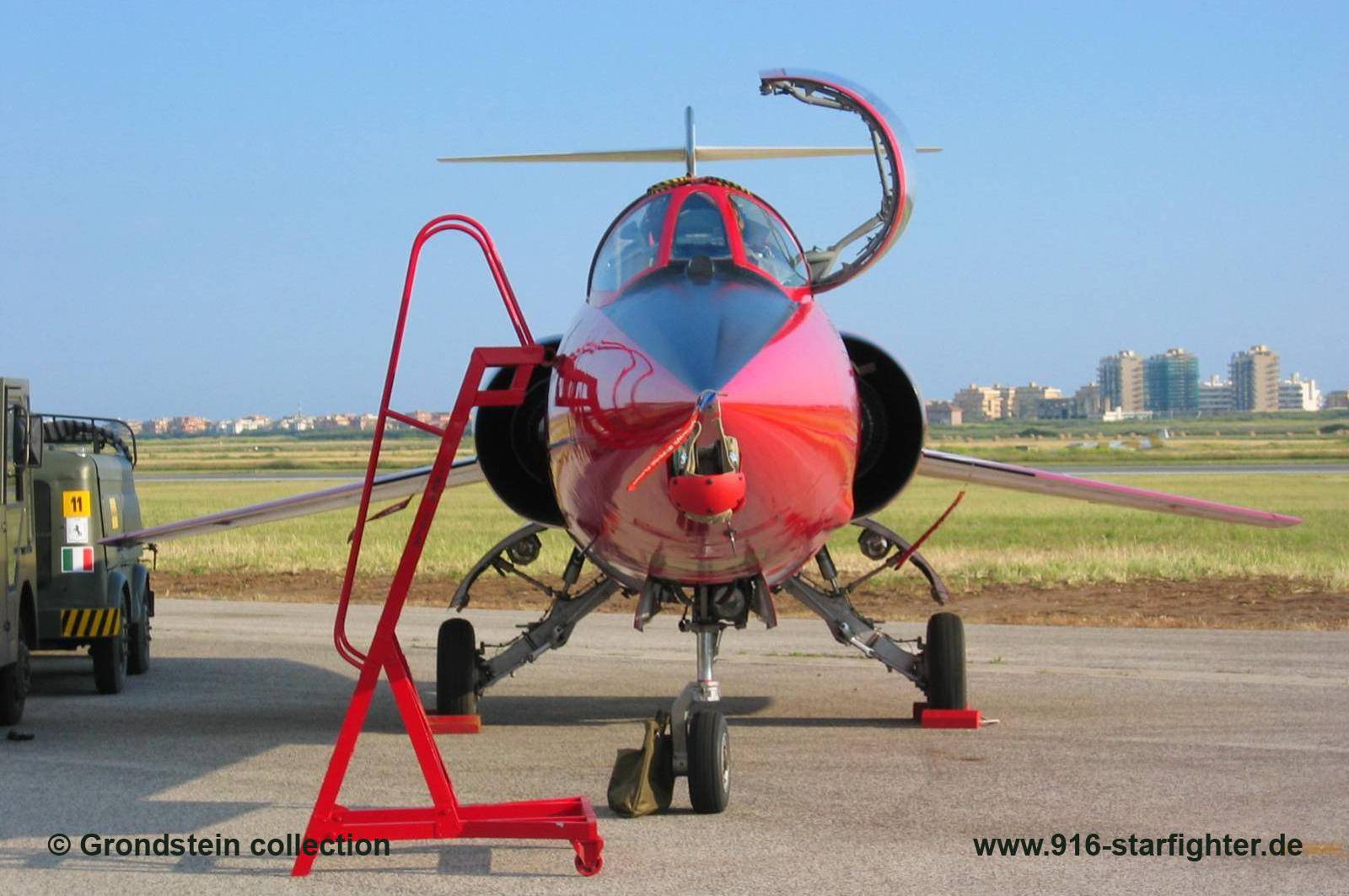F-104S ASA-M "9·99" "Ducati" at Pratica di Mare AB 2004 F-104S, construction number 783-1230, serial number MM6930, built by Aeritalia accepted by AMI July 24,1978; 53-04 21°Gruppo based at Cameri AB 08.1978-13.6.1981; April 1979 squadron exchange with Dutch Air Force 312 squadron based at Volkel AB and 21 Gruppo 4-22 9 Gruppo 07.1983-24.5.1987; July 1984 9 Gruppo based at Grosseto AB rotated with Royal Air Force 56 squadron at Wattisham AB October 1985 9 Gruppo rotated with Dutch Air Force 315 squadron based at Twenthe AB Alenia in June 1987 for conversion to ASA modification + IRAN; completed February 10, 1989; 36-13 12°Gruppo 03.1989-7.8.1990; 5-30 23°Gruppo 24.5.1991-21.9.1992; "36-" 11.1994-14.2.1996; coded "06" with 311°Gruppo 29.6.1996; RS-06 28.11.1996; 4-12 9 Gruppo Grosseto AB 6.3.1997-9.11.1998; TLP 1997-3 at Florennes AB May 1997 September 1997 rotation with JG 74 at Neuburg; IRAN + F-104S ASA-M conversion at Caselle 14.12.1998-15.9.2000; respray in grey camouflage scheme delivery date 10°Gruppo 15.9.2000, 9-53 25.9.2000-2.9.2003, special colors 9-99 Ducati 10 Gruppo 19.IX.2003 first flight; Pratica di Mare F-104 farewell; October 27, 2004 Kleine-Brogel visit last flight at Grazzanise 31.10.2004 with 4.024 flight hours (last 104 formation); stored Grazzanise 1.11.2004; 07.2013 preserved in shelter noted; July 2024 noted; November 2021 last noted displayed outside at Vigna di Valle in Italian Air Force Museum October 25, 2024; April 2025 noted. claim of fame:on 25.3.2004 made the F-104 world flight hours record with 2:50 hours without air refuelling in 1 flight copyright © Grondstein collection