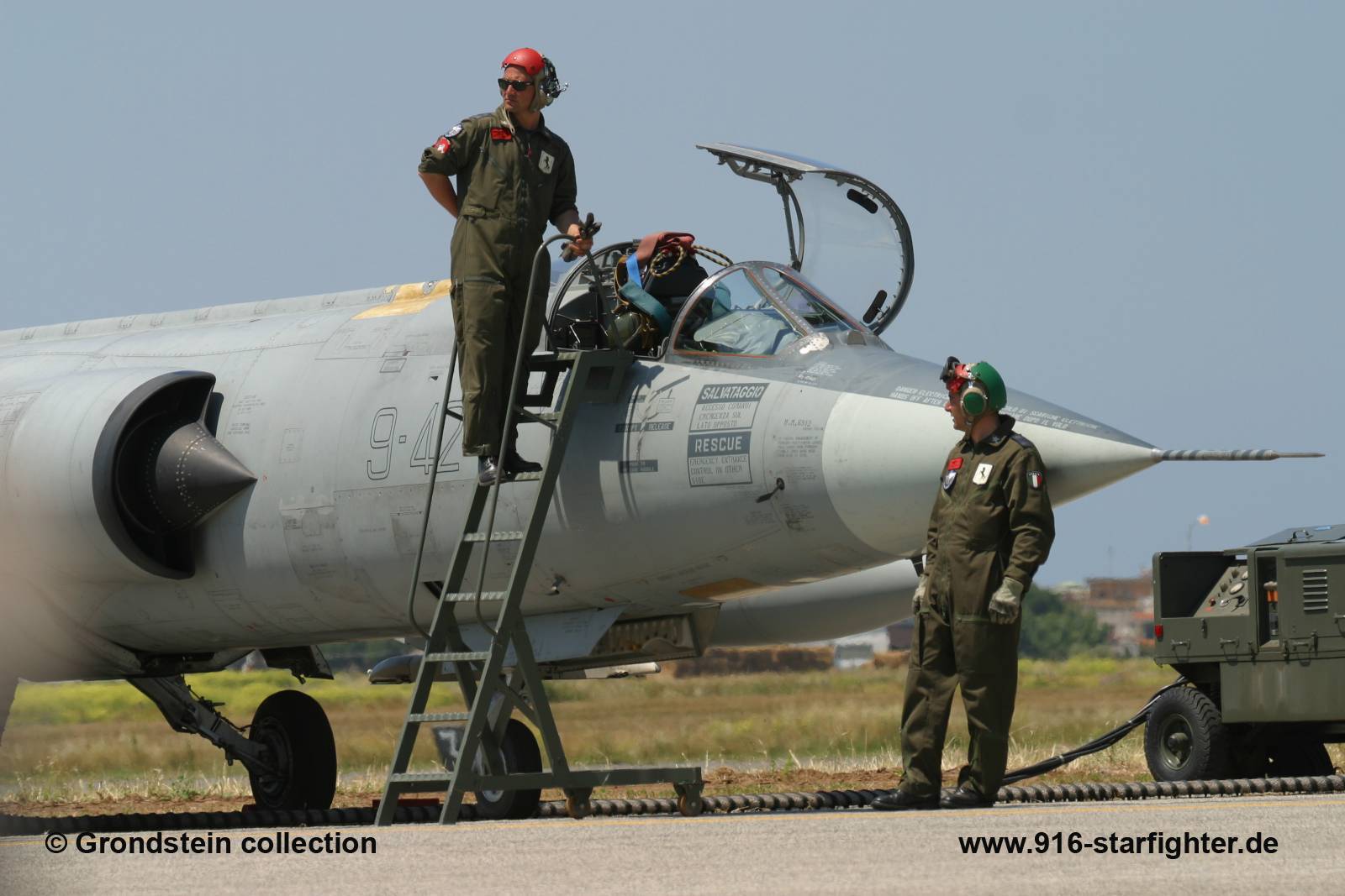 F-104S ASA-M "9-42" at Pratica di Mare AB May 30, 2004 The "new" F-104 was called S because it was designed to carry and fire the AIM-7E Sparrow BVR missiles. By the way, two main versions of the F-104S were finally made: the interceptor variant (CI) and the strike variant (CB). The F-104S/CI had a FIAR/NASARR F15G radar capable to guide the Sparrow missiles. The missile's guidance system was quite large and it was accommodated in the space used for the gun in the F-104G. So the CI was only armed with a maximum combination of 2 Sparrows and 4 Sidewinders. Theoretically it was a great improvement over the 2 Sidewinder of the G, by the way the need to carry auxiliary fuel (to the inboard pylons) tanks and the impossibility to use the ventral pylons (just as it was for Italian F-104G) limited the CI maximum armament to 2 Sidewinder to the tips and 2 Sparrows to the outboard pylons. During QRA duty F-104S/CI were usually lighter and standard configuration was just 1 sidewinder and 1 Sparrow and tip tanks. F-104S/CI also had no central underbelly pylon. by Pierpaolo Maglio copyright © Gronstein collection