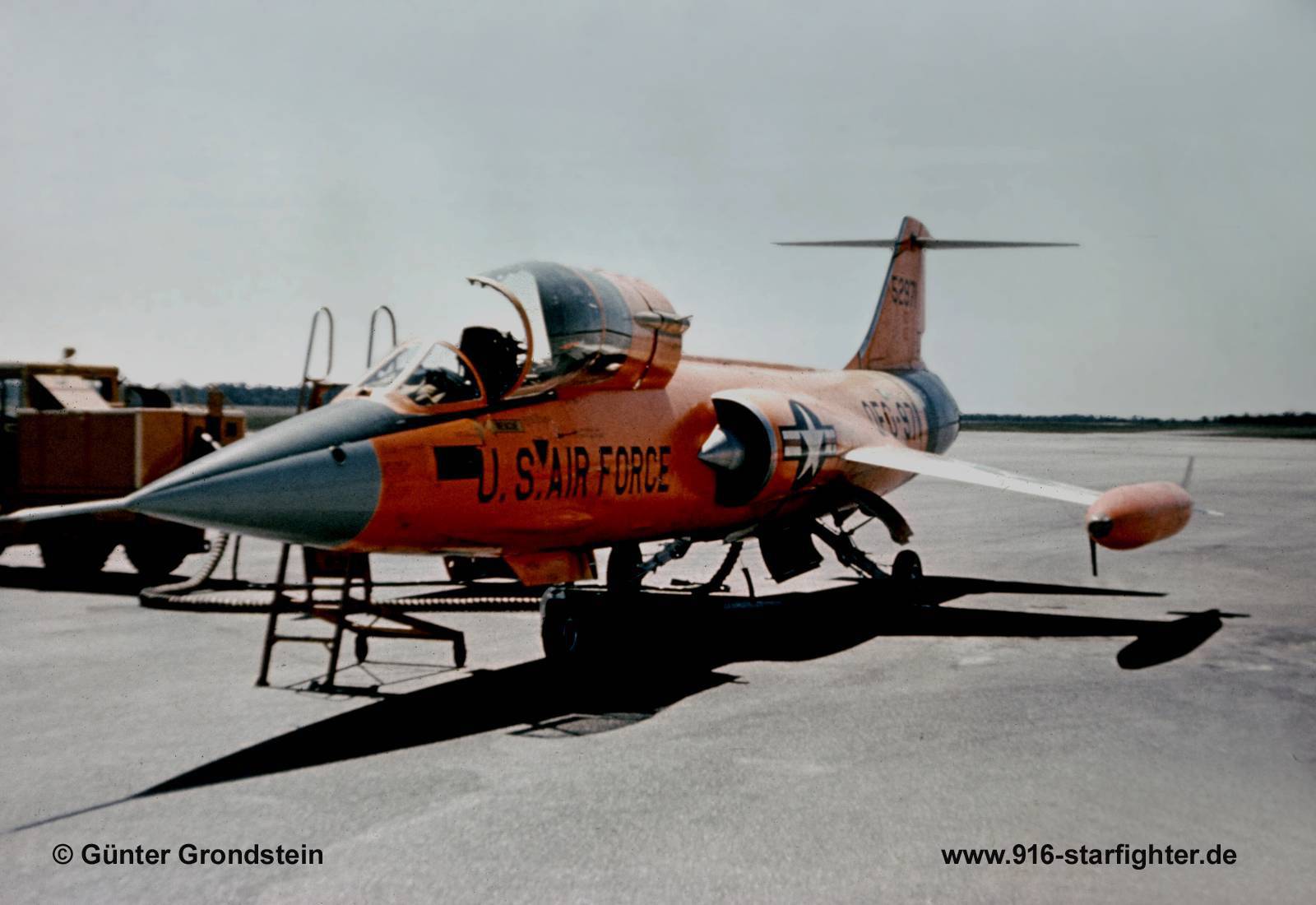 JQF-104A "QFG-971" 3205th Drone Squadron in overall Day-Glo color scheme The QF-104A was a special modified version of the (Y)F-104A Starfighter which could be flown remotely controlled. The control was done by F-104 pilots on the ground or inside another aircraft. The conversion of the (Y)F-104A to QF-104A was approved on February 19, 1960 by the USAF. Testing of the QF was conducted during the period of January 9, 1961 to October 16, 1961. The reason for converting the (Y)F-104A was the need for high altitude, high speed targets for the development of ground-to-air (BOMARC) and Air-to-Air (AIM-7-AIM 9-GAR 2B-MB 1-AIM 4) missiles. The first unmanned mission was flown on October 17, 1961 being probably QF-104A "55-2957". There are conflicting numbers on the total QF-104A's manufactured. Lockheed says 24, Chuck Dildine's records show 22 that were delivered to the USAF. 20 of them were actually killed as targets and one crashed during a test flight (pilot ejected safely). Most QF-104 missions were flown at Eglin AFB, Florida. However, some were flown at Holloman AFB in New Mexico and a small number at Point Magu NAS, California (US NAVY). copyright © Günter Grondstein