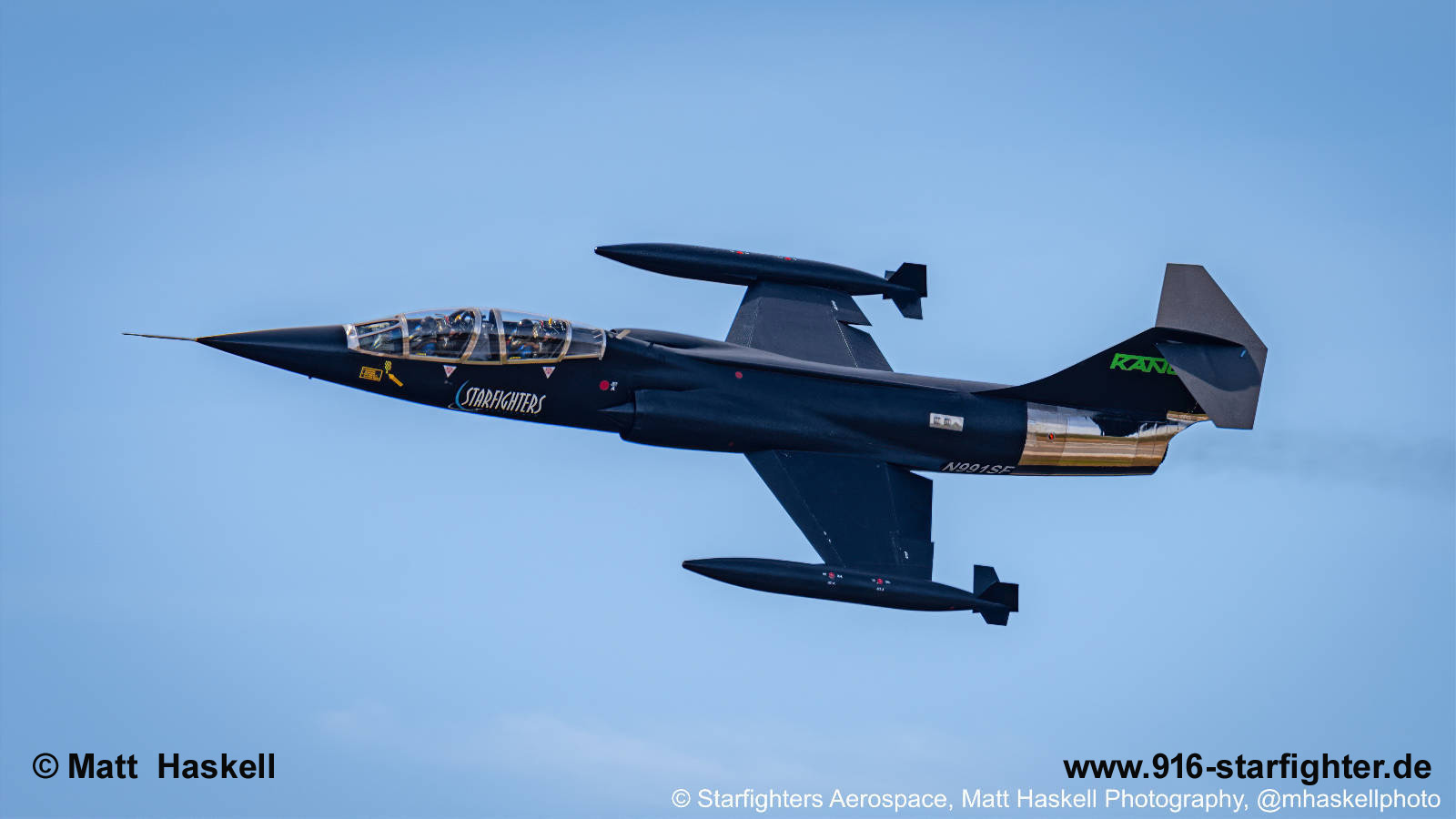 TF-104G-M "N991SF" "Starfighters" "Black Beauty" show pass July 15, 2021 TF-104G, MM54258, construction number 583H-5209, model 583-10-20, built by Lockheed copyright © "Starfighters" archive Matt Haskell