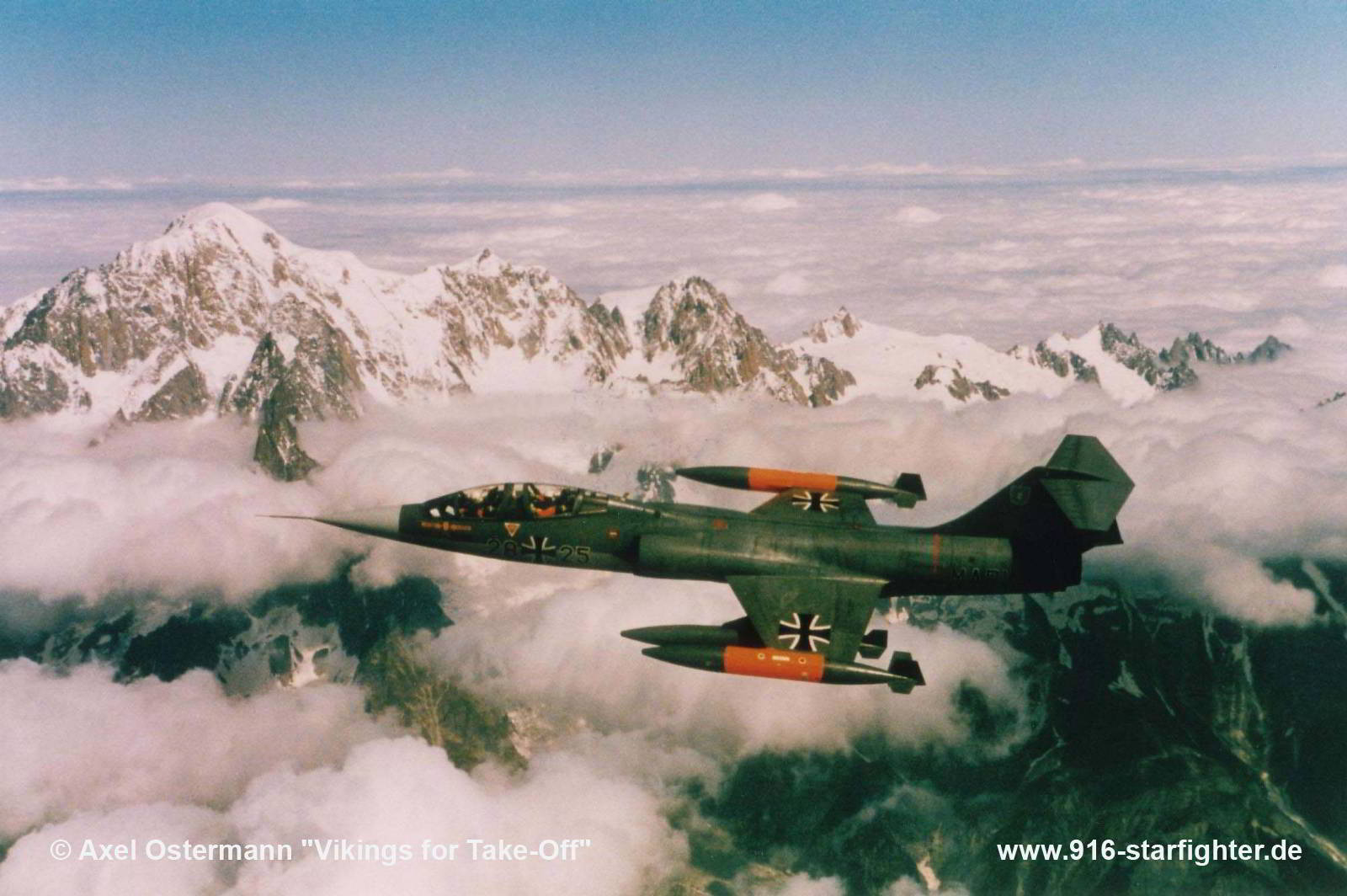 TF-104G "28+25" of MFG 2 passing the Mont Blanc (15.771 feet) in the French Alps All pictures are from the book: "Vikings for Take Off" Picture taken by Axel Ostermann on flights around Europe I am very grateful that I can show all these wonderful pictures on my website and keep those moments alive for decades to come