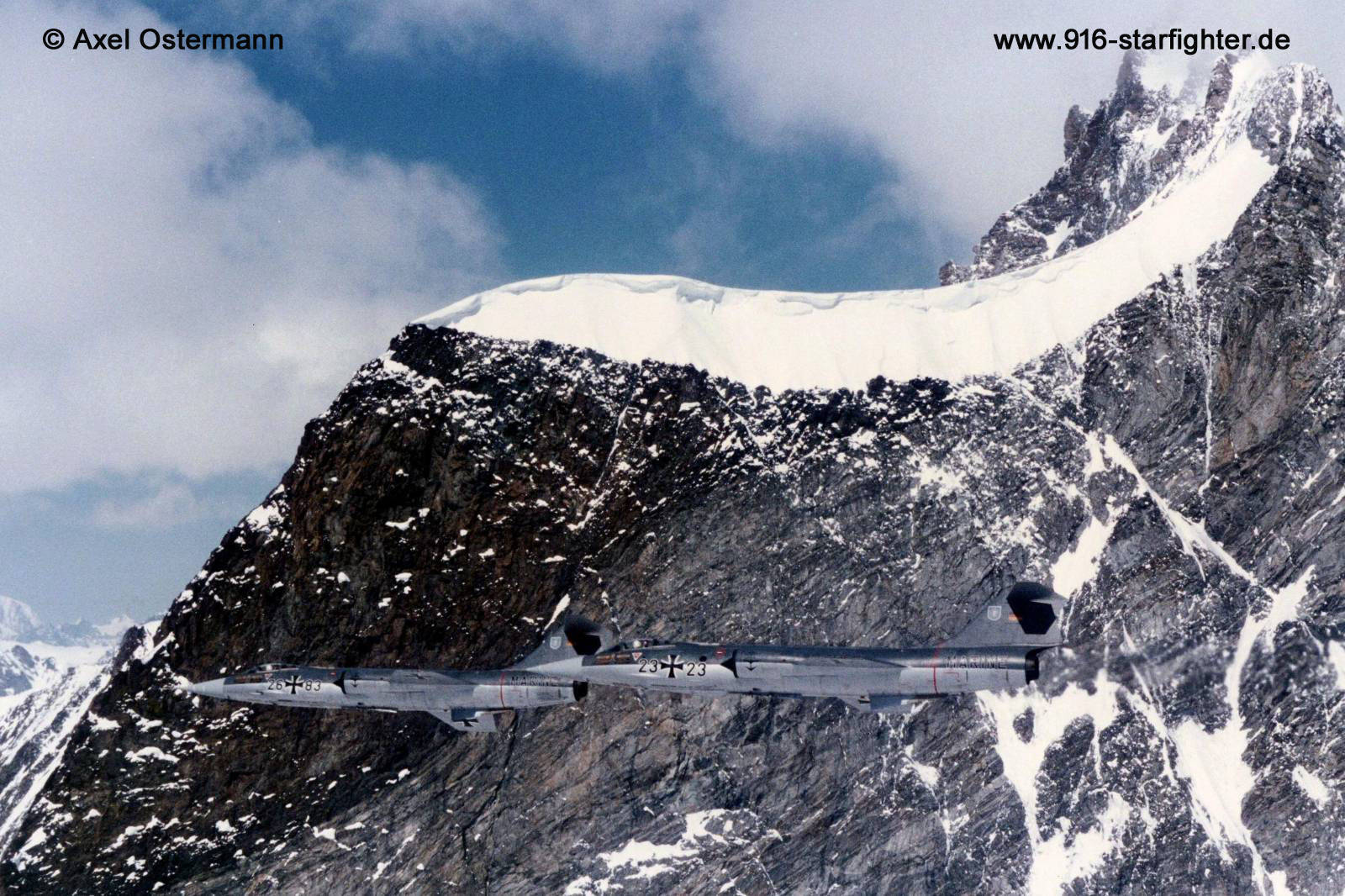 22+23 of MFG 2 passing the "Berner Oberland" June 13, 1986 Picture taken by Axel Ostermann on flights around Europe
