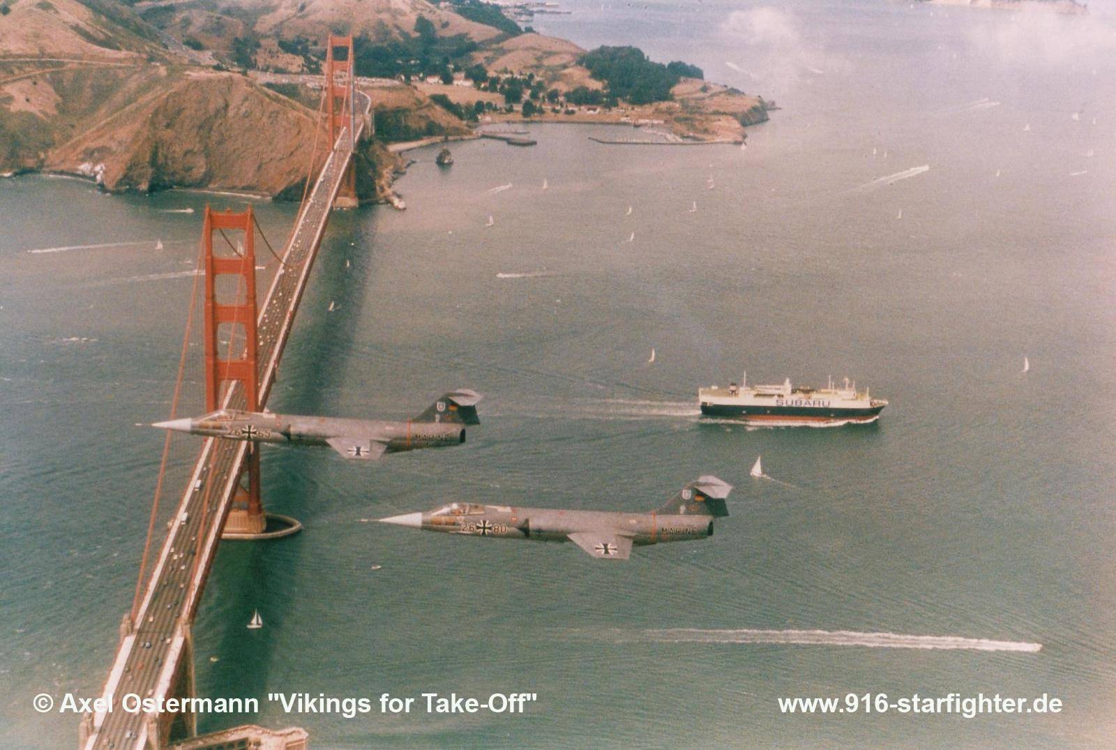 F-104G 26+56 MFG 2 destination San Francisco, overflying the Golden Gate bridge 1986 "F-104 Farewell" flight in August 1986, when 4 German Navy Starfighter flow all the way to NAS Moffett Field, California. photo taken by Axel Ostermann
