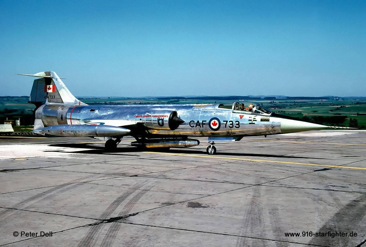 CF-104 "733" of the 4 ATAF team during Tactical Weapons Meet 1970 (TWM70) at Bitburg AB 1970 CF-104, Canadair Model CL-90, Lockheed Model 683-04-12, construction number 683A-1133, built by Canadair first flight February 21, 1962; received as 12733 June 21, 1962; first unit 6 ST/R OTU reserialed as 104733 effective June 1970; May 1976 at Twenthe for the 12.Tactical Weapon Meet, aircraft wore "1 CAG" in red on white wingtip tanks for the Tactical Weapons Meet. Wore a large grey "A" behind flag and above serial on tail for 441 Squadron's team during Tactical Air Meet'78 at RAF Wildenrath Germany, June 1978 after the Tactical Phase, 104733 was replaced by 104868. 104733 participated in the 1980 Tactical Air Meet at Ramstein AB. It wore a large "A" on the tail and a red maple leaf on the tip tanks with a stylized blue "1 Canadian Air Group" superimposed on it. Each "i" was dotted with a small red maple leaf. At Prestwick International Air Display 1985; struck off service March 11, 1986to Turkey on March 18, 1986 with 5.408 flight hours (TuAF serial number 62-733) 104733 was allocated to the Turkish 8th Jet Airbase at Diyarbakir in the South East of the country coded "8-733" withdrawn from use with 182 Filo at Diyarbakir AB August 27, 1993 with 6.655 flight hours during its service in Turkey it flew 1.247 flight hours averaging approx 178 flight hours per year during that time; storage at Eskisehir still coded "8-733" preserved Istanbul Military Museum (Asker Muzesi), Istanbul, Turkey coded as "8-733"; 1995 first noted; December 2024 noted. copyright © Peter Doll