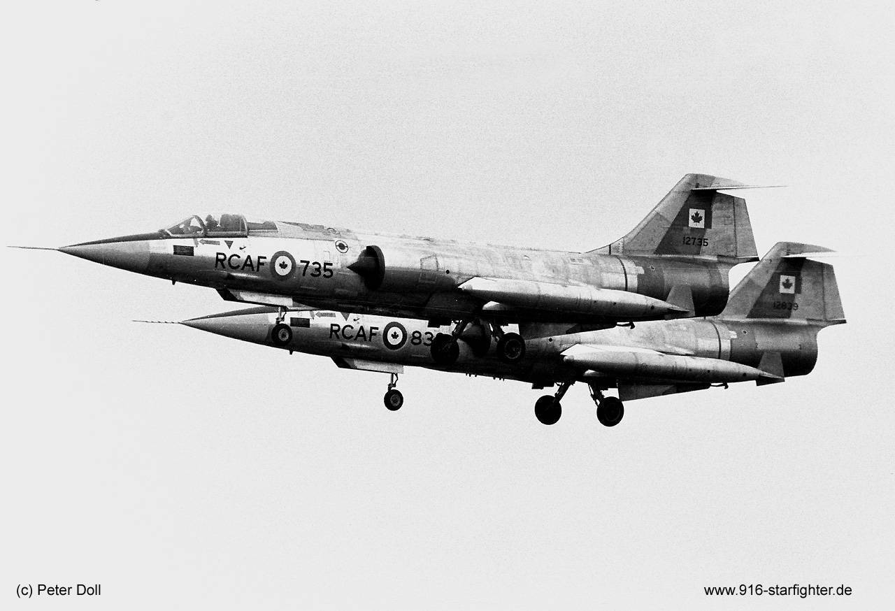 CF-104 "735" RCAF at CFB Sollingen 1964 CF-104, Canadair model CL-90, Lockheed model 683-04-12, Canadair construction number 683A-1035, RCAF serial number 12735, built by Canadair first flight February 10, 1962, delivery date April 26, 1962 as 12735; first unit was 6 ST/R OTU at Cold Lake later assigned to 1 Air Division, Canadian Air Group in Germany; reserialed as 104733 effective June 1970it was struck off service by the CAF on March 6, 1986 and taken on service by the Turkish Air Force coded 62-735 on March 13, 1986 operated by the 182 Filo of 8.AJU coded "8-735" it crashed after a midair collision with 62-751 (ex-104751) on April 16, 1993, both were operated by the 182 Filo at the time written off. copyright © Peter Doll