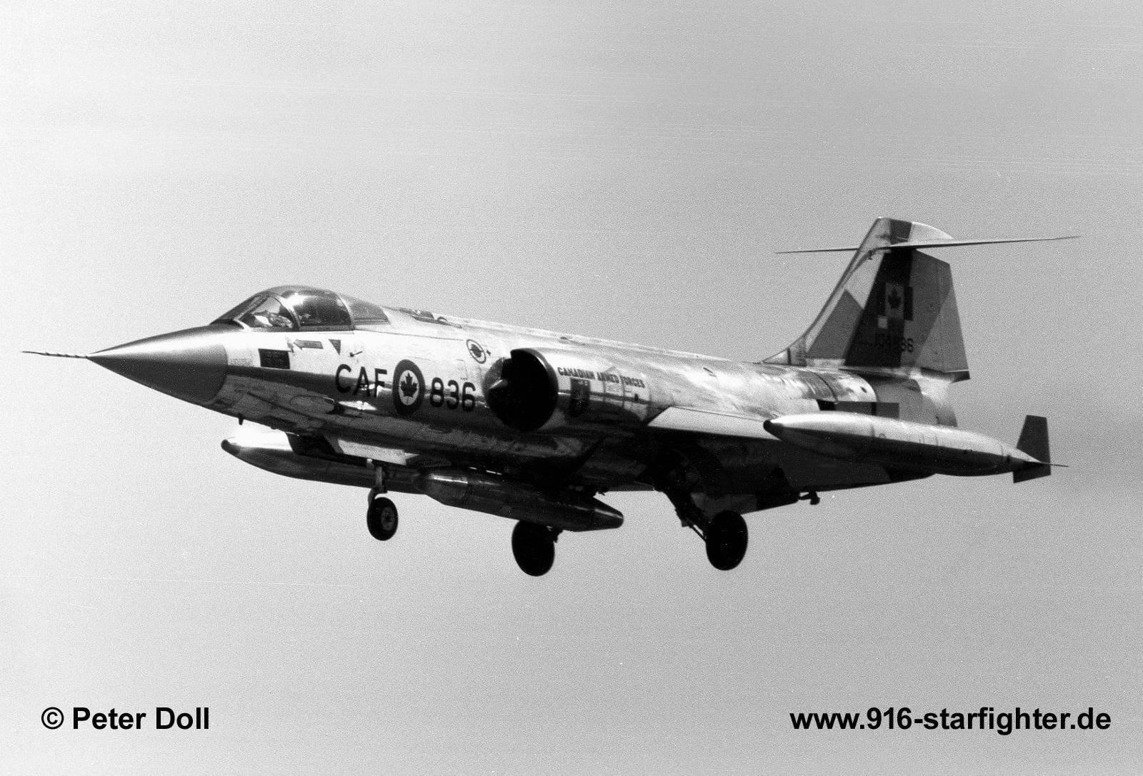 CF-104 "836" of 1 Canadian Air Group (1 CAG) at TWM 70 at Bitburg AB 1970 as part of the 4.ATAF team in June 1970 CF-104, Canadair model CL-90, Lockheed model 683-04-12, Canadair construction number 683A-1136, RCAF serial number 12836, built by Canadairtaken on service by RCAF as CF-104 Starfighter serial number 12836 March 12,1963; first unit 1 Air Division reserialed as 104837 effective June 1970; at TWM at Bitburg AB in June 1970; struck off service May 23, 1973