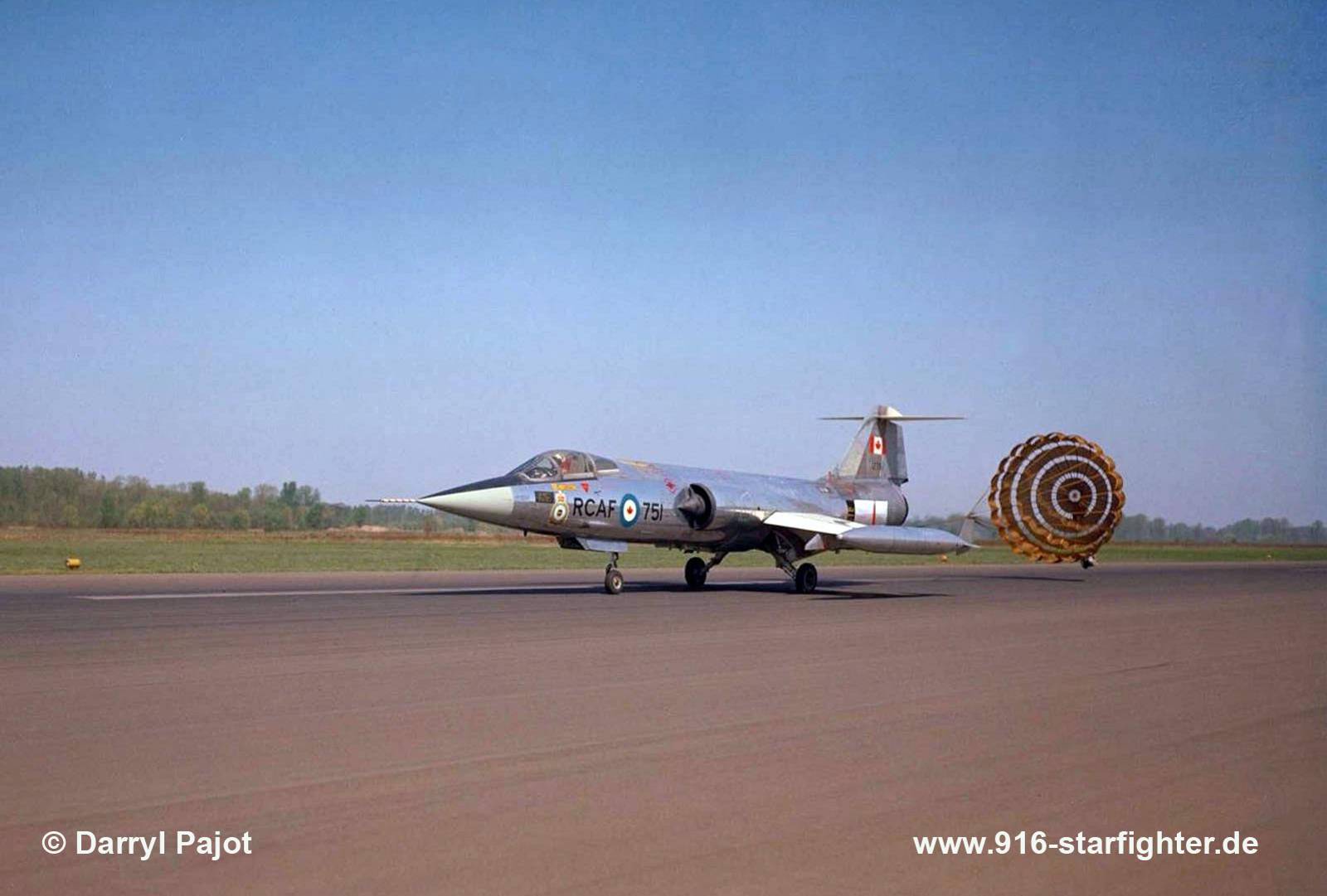 CF-104 "751" of 3 Wing landing at CFB Sollingen in May 1978 CF-104, Canadair model CL-90, Lockheed model 683-04-12, Canadair construction number 683A-1051, RCAF serial number 12751, built by Canadairfirst flight 3 March 1962; taken on service by the RCAF as CF-104 sn 12751 May 26, 1962; first unit 6 ST/R OTU returned to Canadair in late 63-early 64 and modified and delivered to 1 Air Division; reported operational with 422 squadron of 4 Wing in 1969 reserialed as 104751 effective June 1970; first seen as 104751 at CFB Sollingen with 4 Wing on July 9, 1972 seen with 439 sqn in 1977 and also during a visit at Volkel from 8. till 9. October 1981; struck of service March 6, 1986 for Turkey