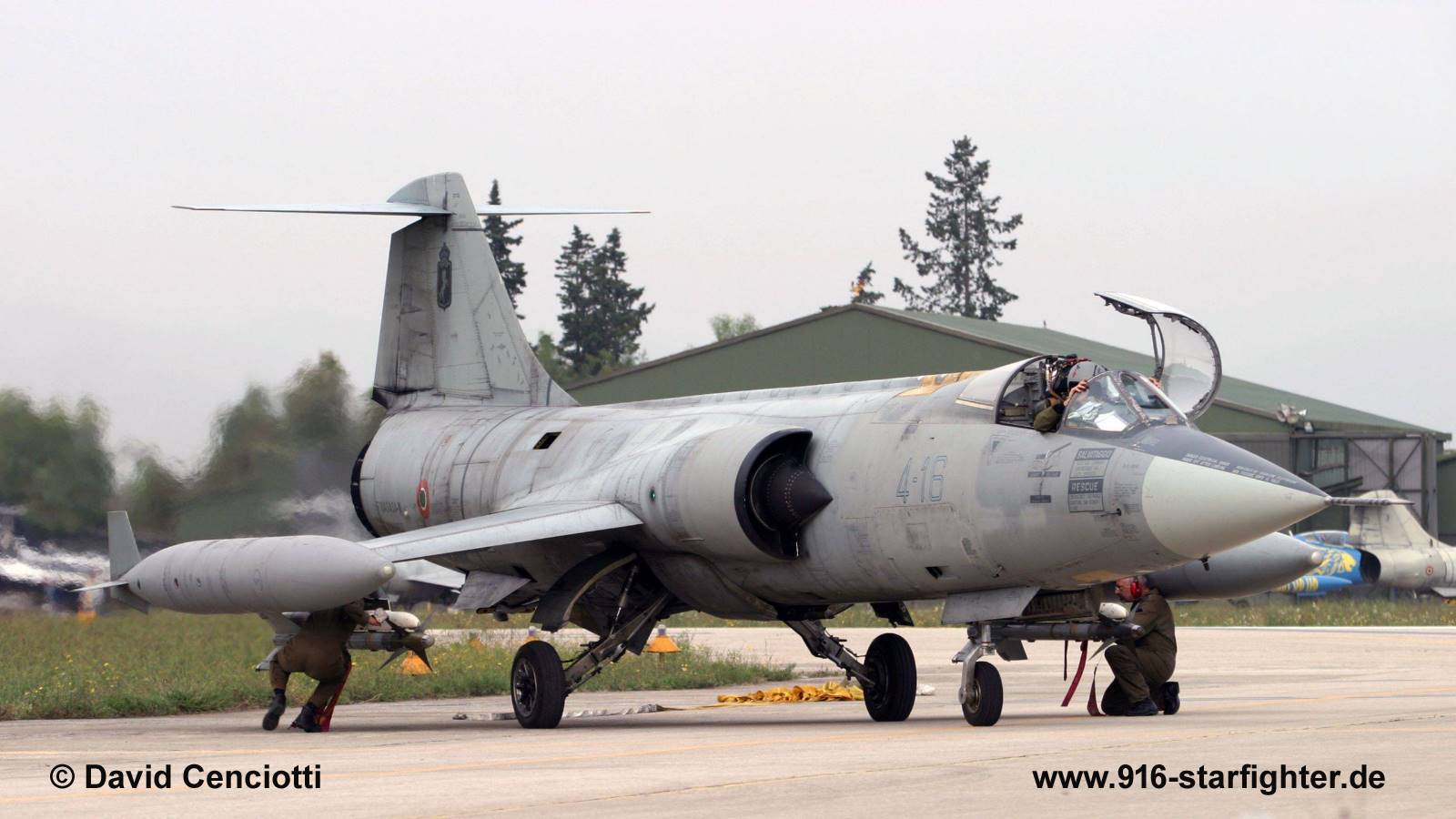 F-104S ASA-M "4-16" MM68500 9°Gruppo after the last operational flight October 30, 2004 from Grazzanise AB F-104S, construction number 783-1150, serial number MM6850, model 783, built by AeritaliaAeritalia delivery date 23.7.1974; 53-10 10.1975-11.1981 21 Gruppo CIO 53 Stormo; IRAN 1.2.1983-2012.1983 delivery date 22°Gruppo 23.12.1983, 51-20 12.1.1984-20.1.1988 22 Gruppo Caccia Intercettori Ognitempo 51 Stormo; IRAN 20.1.1988 and F-104S ASA conversion until 25.5.1989 36-02 8.6.1989-28.6.1992 XII Gruppo Caccia Intercettori Ognitempo 36 Stormo 36-02 which should have a special zapping during the squadron exchange at Twenthe AB by 313 squadron (in 1989 12 Gruppo went to Twenthe for an exchange with 313 sqn) IRAN till 28.12.1994; delivery date 22°Gruppo 9.1.1995, 51-12 11.1.1995-20.10.1998, 22 Gruppo was disbanded on 25.02.1999 delivery date 10°Gruppo 20.10.1998, 9-50 12.11.1998-10.12.1998 X Gruppo Caccia Intercettori Ognitempo 9 Stormo IRAN + F-104S ASA-M conversion 10.12.1998-11.7.2000; grey camo scheme; delivery date 18°Gruppo 11.7.2000, 37-24 08.2000-15.4.2002 18 Gruppo Caccia Intercettori Ognitempo 37 Stormo 5-41 12.2002-01.2003; uncoded 37°Stormo 18°Gruppo 12.3.2003 37-24 26.4.2003-10.5.2004 18 Gruppo Caccia Intercettori Ognitempo 37 Stormo flying with 9 Gruppo as "37-24" from April 2003 (and this was still on loan) 4-16 (26.5.2004-31.10.2004) active Grosseto AB; last flight 31.10.04; withdrawn from use 1.11.2004 Grazzanise AB stored April 2005 noted; Grazzanise AB storage flightline in June 2011; no further information. copyright © David Cenciotti