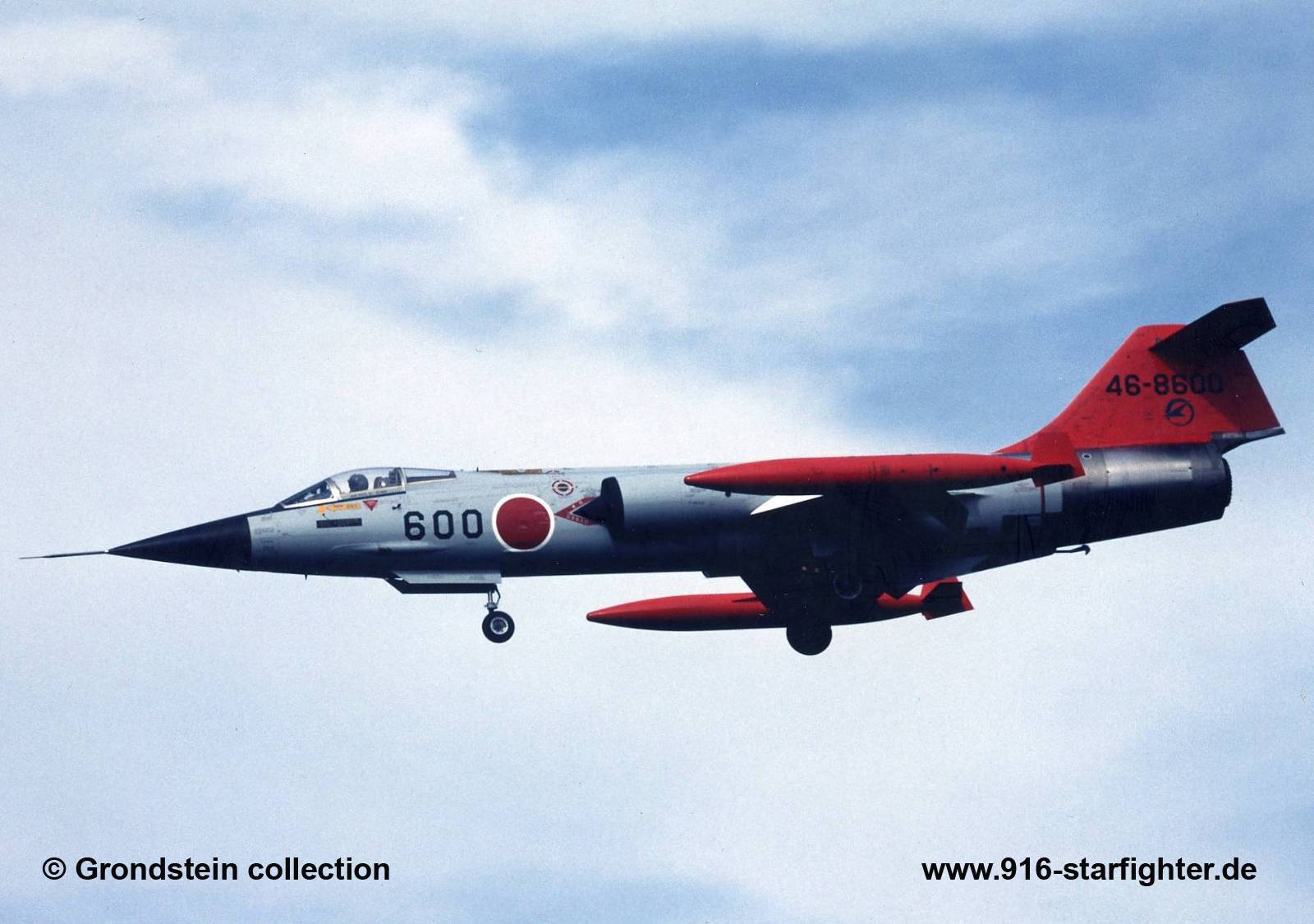 QF-104J "600" (piloted drone prototype) tested by APW F-104J, construction number 683B-3100, model 683-07-14, JASDF serial number 46-8600, built by Mitsubishi QF-104J (46-8600) landing during training. This aircraft was also a pilot-controlled, experimentally improved aircraft that could be overridden by the pilot at any time, even when remotely controlled from the ground. The aircraft number 592 was used in the last firing exercise in 1996 and was lost. It should be noted that full-scale ballistic firing is essential not only for improving the pilot's war fighting skills, but also for developing new types of missiles. The last duties for JASDF F-104J were to be unmanned target drones. Two F-104Js were modified to XQF-104J experimental drones and tested by ADTW. After that, a total of 14 Starfighters converted to UF-104JA target drone and all of them were shot down at a firing range located near Iwo-Jima. copyright © Grondstein collection