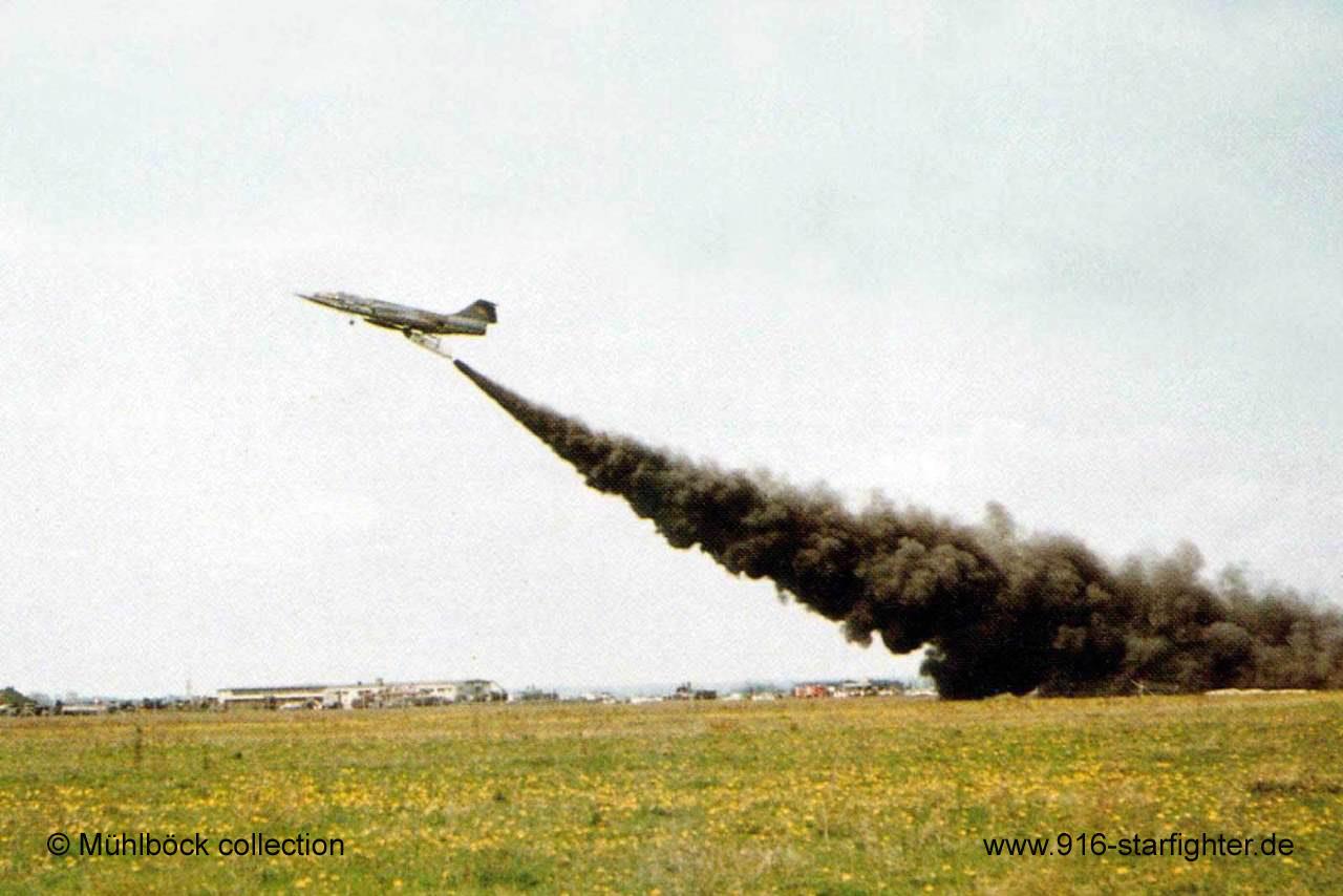 F-104G "DB+127" launch at Lechfeld 1964 F-104G, construction number 683-2002, model 683-10-19, built by Lockheed manufactured by Group USA (ARGE-USA); first flight around November 15, 1960 with register number "102" acceptance date in 1960 by BABwLockheed in Silver-finish colors coded DA+102 for Joint Test Force operation at Palmdale testing basic systems (structure and aerodynamics) in 1961 modified for ZELL (Zero-Length Launch) program at Edwards AFB in 1962; 8 ZELL take-offs at Edwards in 1963 stored at Palmdale with 202 flight hours; shipped to VFW-Lemwerder, Germany on July 28, 1965 for reassembly and modifications camouflage scheme "Norm 62" according tech order "TA-196" in 1966; coded DB+127 accepted on September 14, 1965 by BABwVFW JaboG 32 delivery date on February 24, 1966 for ZELL trials; total of 7 ZELL-trials at Lechfeld AB from May 4, until July 12, 1966 program cancelled due to changed NATO strategy 20+02 re-modified by Messerschmitt; with ErpSt 61 on April 25, 1968; JaboG 32 on January 4, 1971 stored at LwSchleuse 11 on August 6, 1981 with 2.245 flight hours; struck off charge order (AVA) October 2, 1984 on pole LwUGrpKdo Süd Karlsruhe on April 2, 1985; LwWerft 13 Erding on March 8, 1995 for restoration and modification as ZELL aircraft preserved coded "DB+127" at Luftwaffenmuseum der Bundeswehr Berlin-Gatow in ZELL launch configuration on September 12, 1996 February 2009 noted; October 2025 noted. copyright © Mühlböck collection