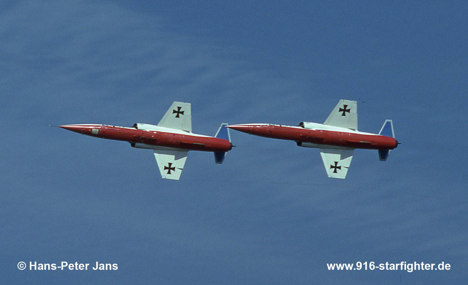 "Vikings" in tight "Trail formation" It took almost four years before a new Starfighter duo was established on the occasion of the Eggebek Airshow in 1983 As MFG 1 was already converting to the Panavia Tornado, the honours belonged to the Eggebek based MFG 2 to create the "Vikings". copyright © Hans-Peter Jans