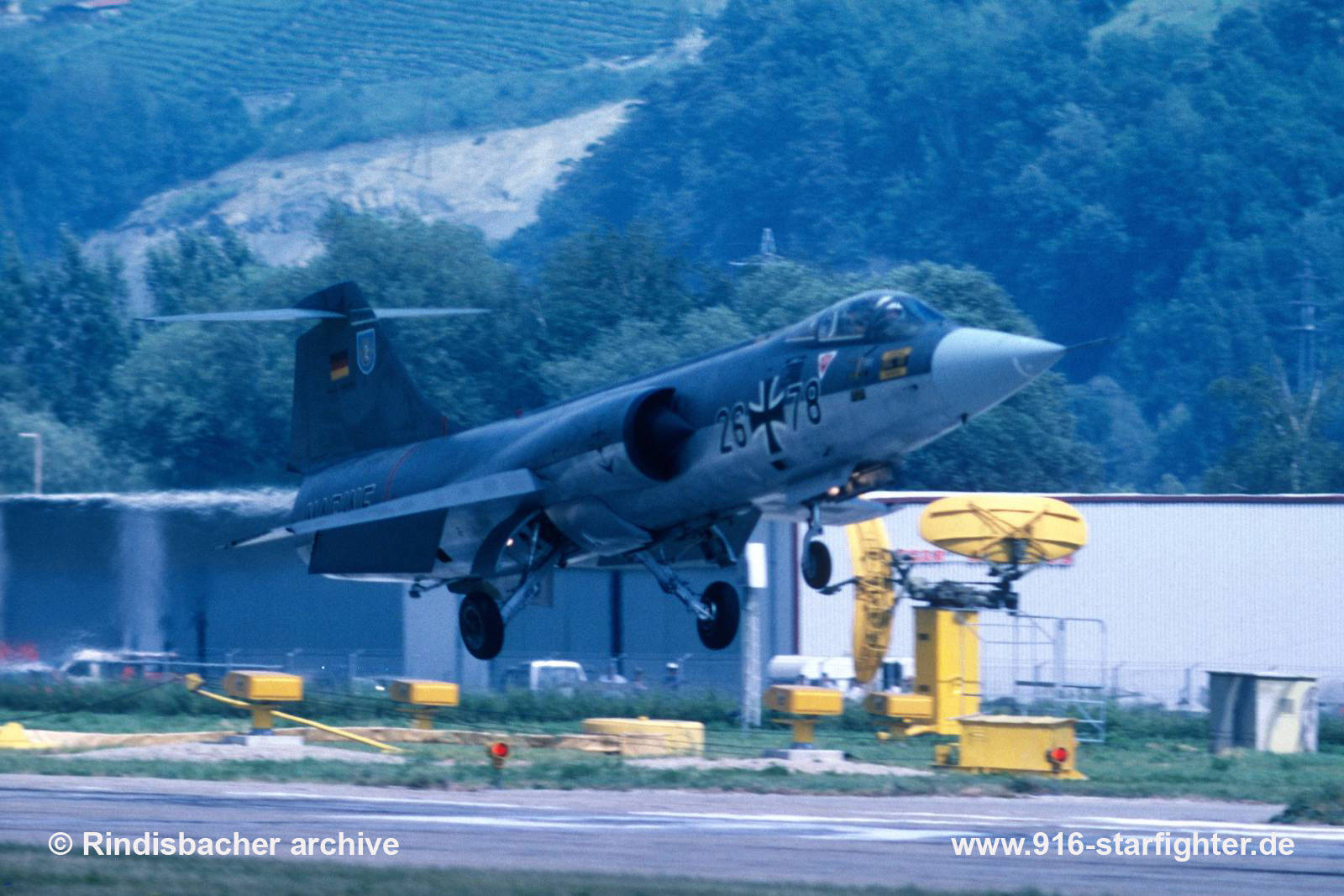 "Vikings" landing at Sion AB, Switzerland June 13, 1986 One of the climaxes in the teams history sure is their farewell-tour to North America in August 1986 Four Starfighters crossed the Atlantic to perform in several US and Canadian Airshows and entertained well over half a million spectators. copyright © Rindisbacher archive