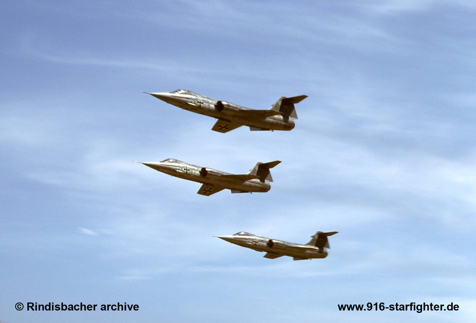 "Vikings" arriving at Sion AB, Switzerland for the “Sion Air show” June 13, 1986 In the late 1970 the German navy decided to establish a two-ship flight demonstration team to display the navy's primary weapon system the F-104G Starfighter and its outstanding abilities. The Jagel based MFG 1 was first to attend Airshows, while MFG 2 followed soon after. Both air wings displays cheered the crowds with their stunning displays home and abroad. Naval air demonstration came to a sudden end, when Kapitänleutnant Manfred Stürmer of MFG 1 crashed on approach to Yeovilton, GB on August 3, 1979. copyright © Rindisbacher archive