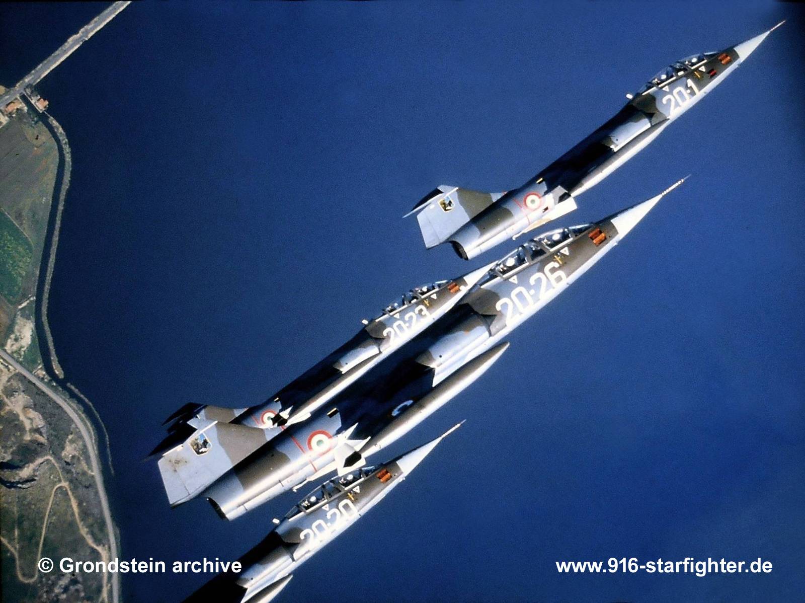 TF-104G "20-23" 20°Gruppo OCU of 4°Stormo "Amedeo d'Aosta" Grosseto AB in early camouflage scheme TF-104G, construction number 583H-5209, model 583-10-20, serial number MM54258, built by Lockheed, reassembled by FIATdelivery date AMI 22.10.1969; delivery date 20°Gruppo Autonomo, Addestramento Operativo (AO) at Grosseto AB 22.1.1970; IRAN 22.6.1973-19.6.1974 delivery date 20°Gruppo 4 Stormo "Amedeo d'Aosta" Grosseto 19.6.1974, 20-23 8.7.1974-01.1985; IRAN+R3 repair 12.7.1976-12.8.1977; IRAN 7.1.1981-4.6.1982 4-40 17.7.1985-26.4.1988; IRAN 29.7.1986-17.9.1987; special color scheme in blue/yellow for "75.000 hrs" on TF 104G 12.1990-28.8.1991; IRAN 28.8.1991-17.3.1994 delivery date 20°Gruppo 17.3.1994, 4-40 29.7.1994-8.7.1997; converted TF-104G-M 29.5.1997-19.7.1998 by 4°RMV delivery date 20°Gruppo 19.7.1998; 4-40 17.7.1998-1.2.2000; IRAN 22.3.1999-21.12.2000; respray in grey camouflage scheme delivery date 20°Gr 21.12.2000, 4-40 16.5.2002-21.10.2004, Pratica di Mare AB May 2004; last flight to Grazzanise 25.10.2004; withdrawn from use 26.10.2004 with 4.351 flight hours