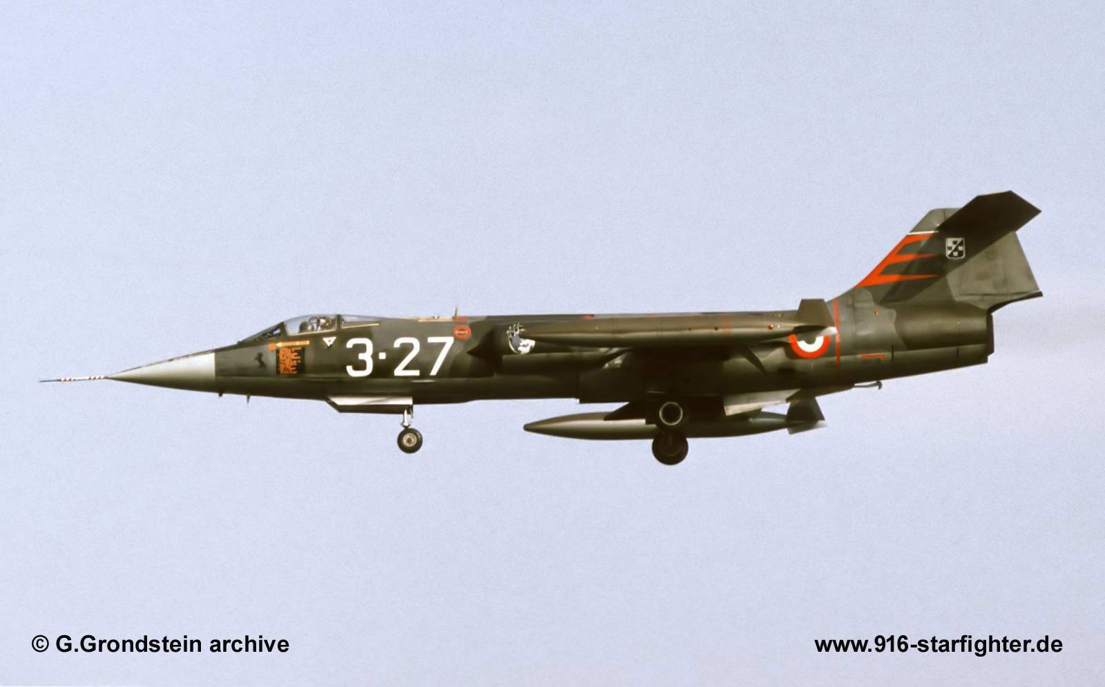 RF-104G "3-27" 132°Gruppo of 3°Stormo "Carlo Emanuele Buscaglia" from Villafranca at RAF Coltishall in July 1985 F-104G, construction number 683D-6643, serial number MM6643, model 683-10-19, built by FIATdelivery date AMI 14.6.1965; delivery date 101 Gruppo 21.6.1965, 5-?? 07.1965-03.1966; delivery date 102 Gruppo 14.3.1966, 5-?? 03.1966-12.6.1967 delivery date 10 Gruppo 12.6.1967, 9-?? 06.1967-17.7.1968; IRAN 12.7.1968-27.3.1969; delivery date 9 Gruppo 27.3.1969, 4-? till 31.7.1970; FIAT for repair delivery date 28 Gruppo 12.10.1970, 3-21 25.10.1971-3.12.1971; IRAN 30.10.1972-18.10.1973; delivery date 28 Gruppo 18.10.1973, 3-28 10.1973-26.8.1974 3-21 7.8.1975; 3-28 2.9.1975-14.2.1977; IRAN 14.2.1977-6.3.1978; delivery date 28 Gruppo 6.3.1978, 3-37 4.4.1978-10.4.1979; 3-22 05.1980; IRAN 3.4.1981-16.6.1982 delivery date 132 Gruppo 16.6.1982, 3-27 10.1982-06.1986; IRAN 22.7.1986-4.8.1987; delivery date 132 Gruppo 4.8.1987, 3-24 10.1988; 3-31 27.6.1990 withdrawn from use Villafranca 24.7.1991 with 3.681 flight hours; CFE in 1995; Villafranca dump 31.7.1997-07.2003 dump (tail/fuselage separated) Villafranca January 2014 last noted; scrapped. copyright © G.Grondstein archive
